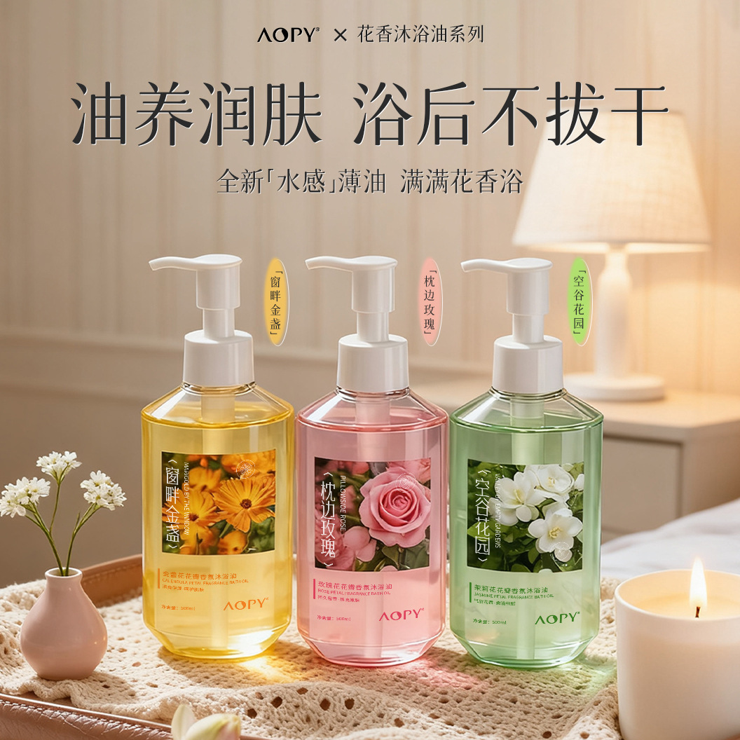花瓣沐浴油茉莉花玫瑰花金盏花香氛沐浴露留香花瓣沐浴露沐浴液
