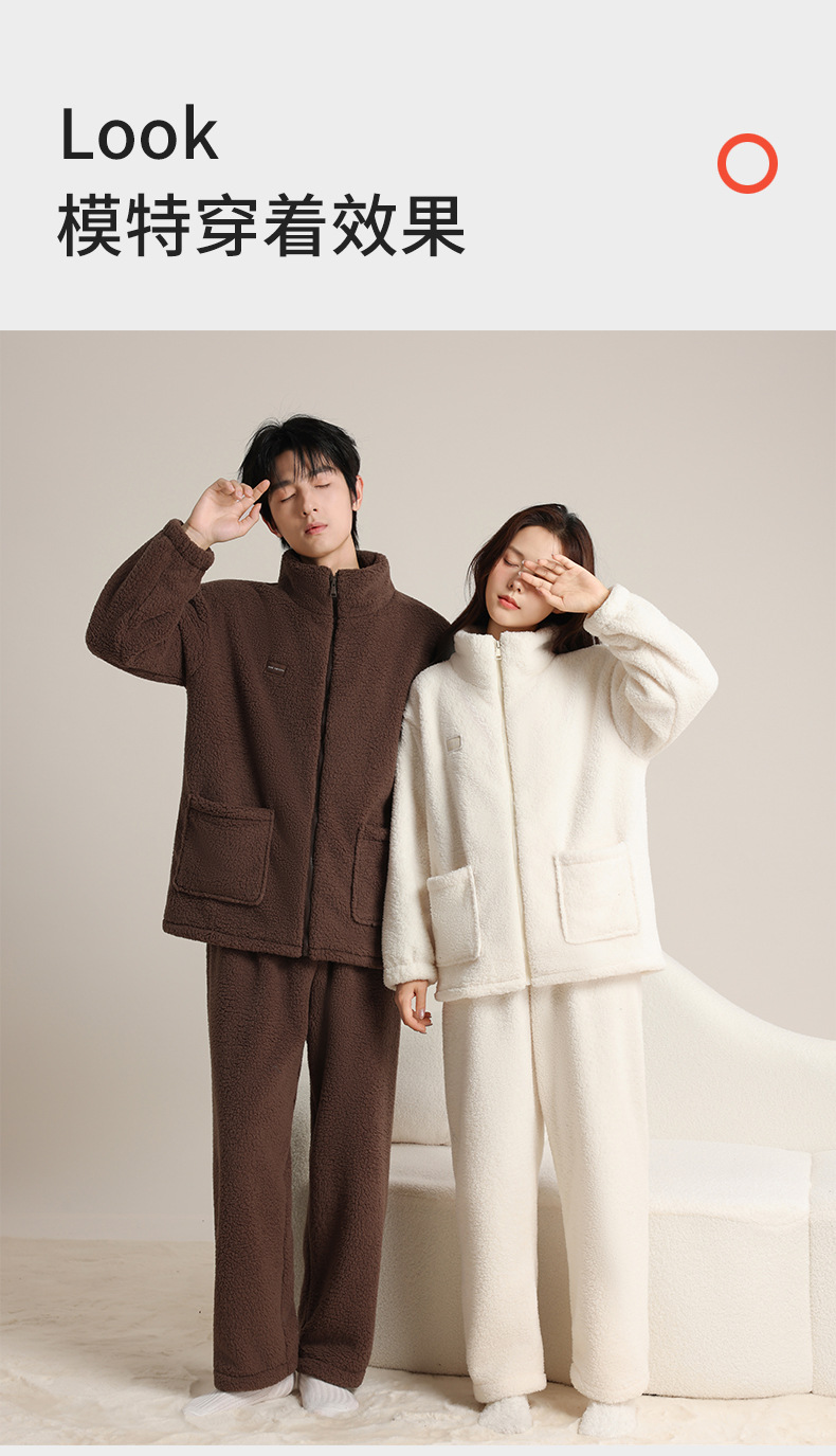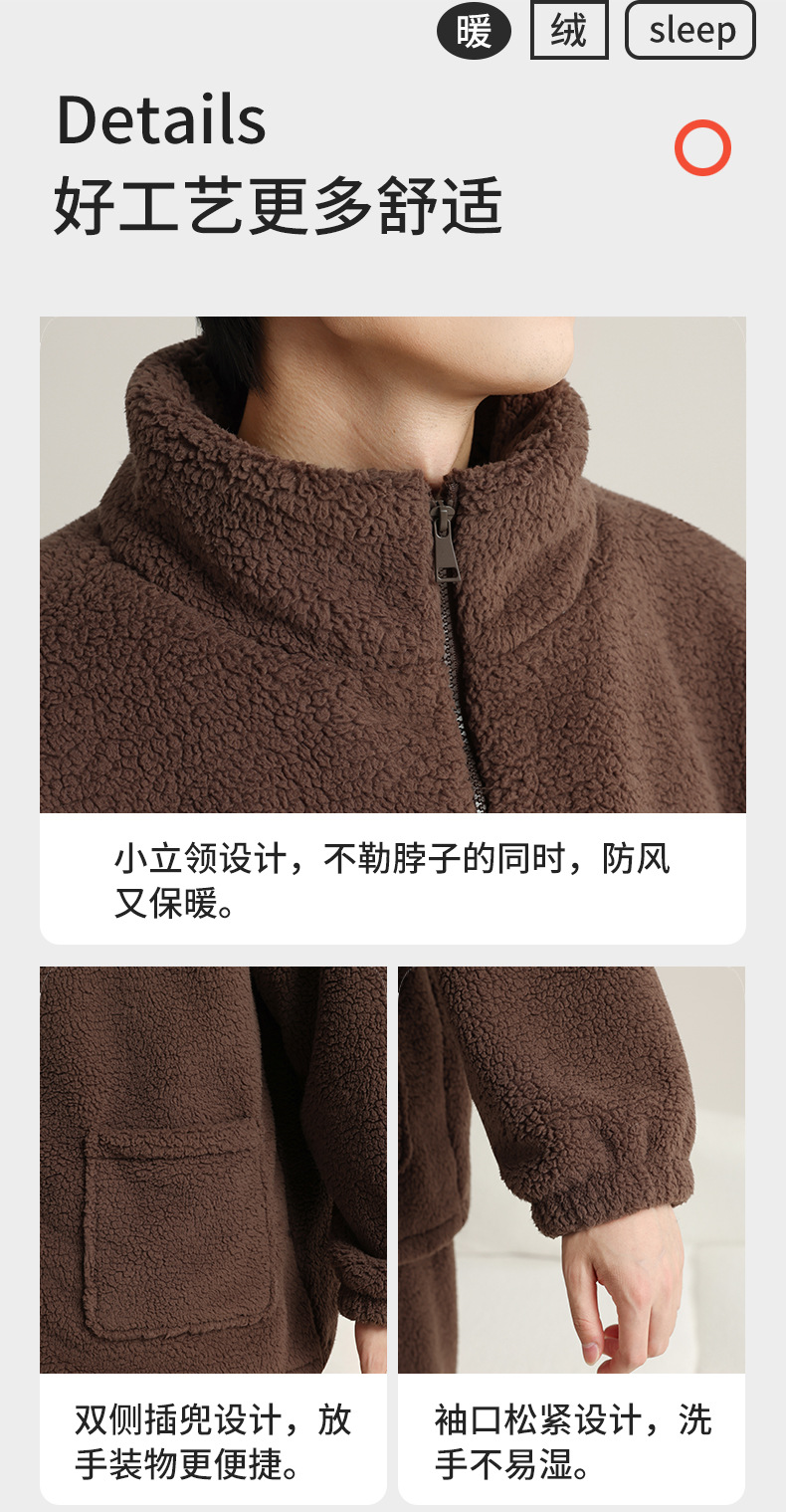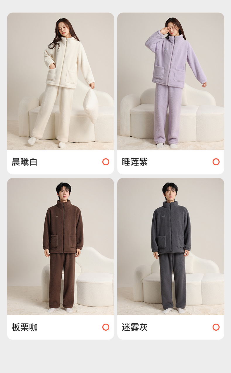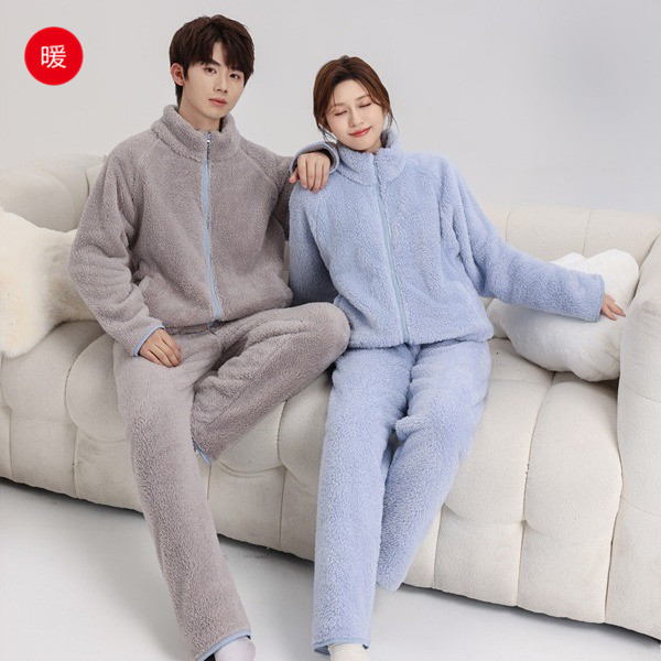 拉链男加厚睡衣暖感珊瑚绒情侣套装女式家居服秋冬保暖可外穿睡衣