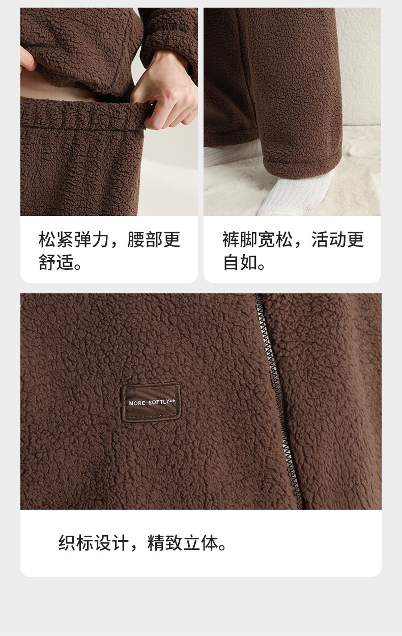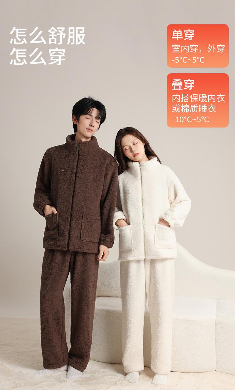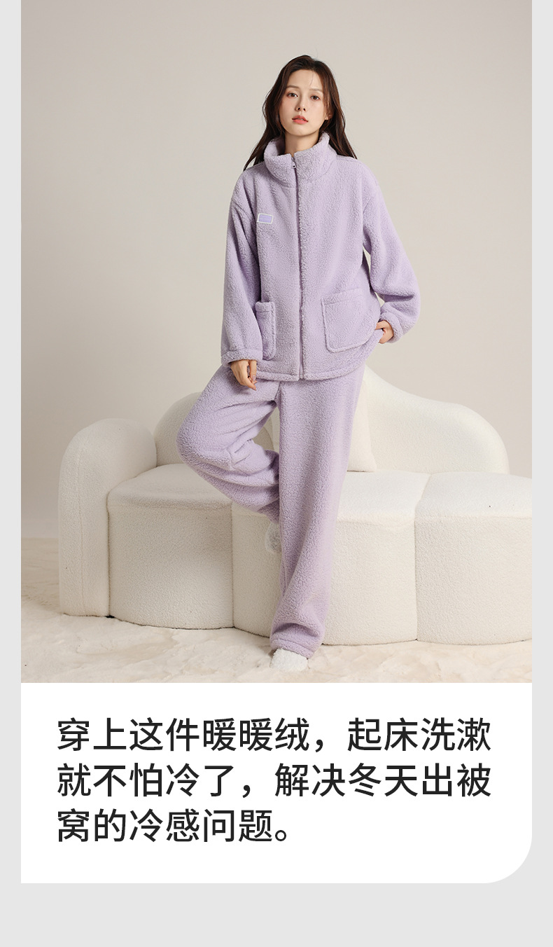 秋冬新款软乎乎舒棉绒情侣拉链睡衣可外穿加厚保暖家居服男女套装
