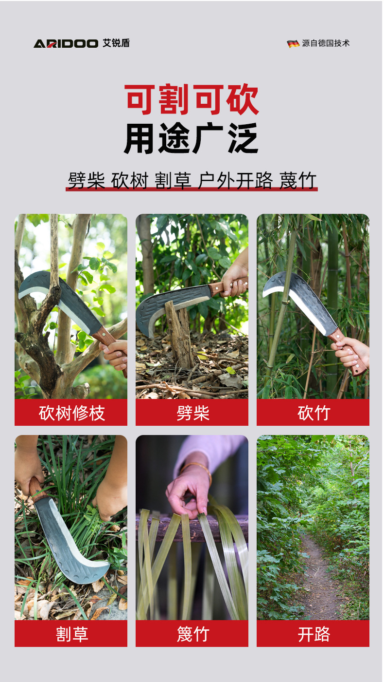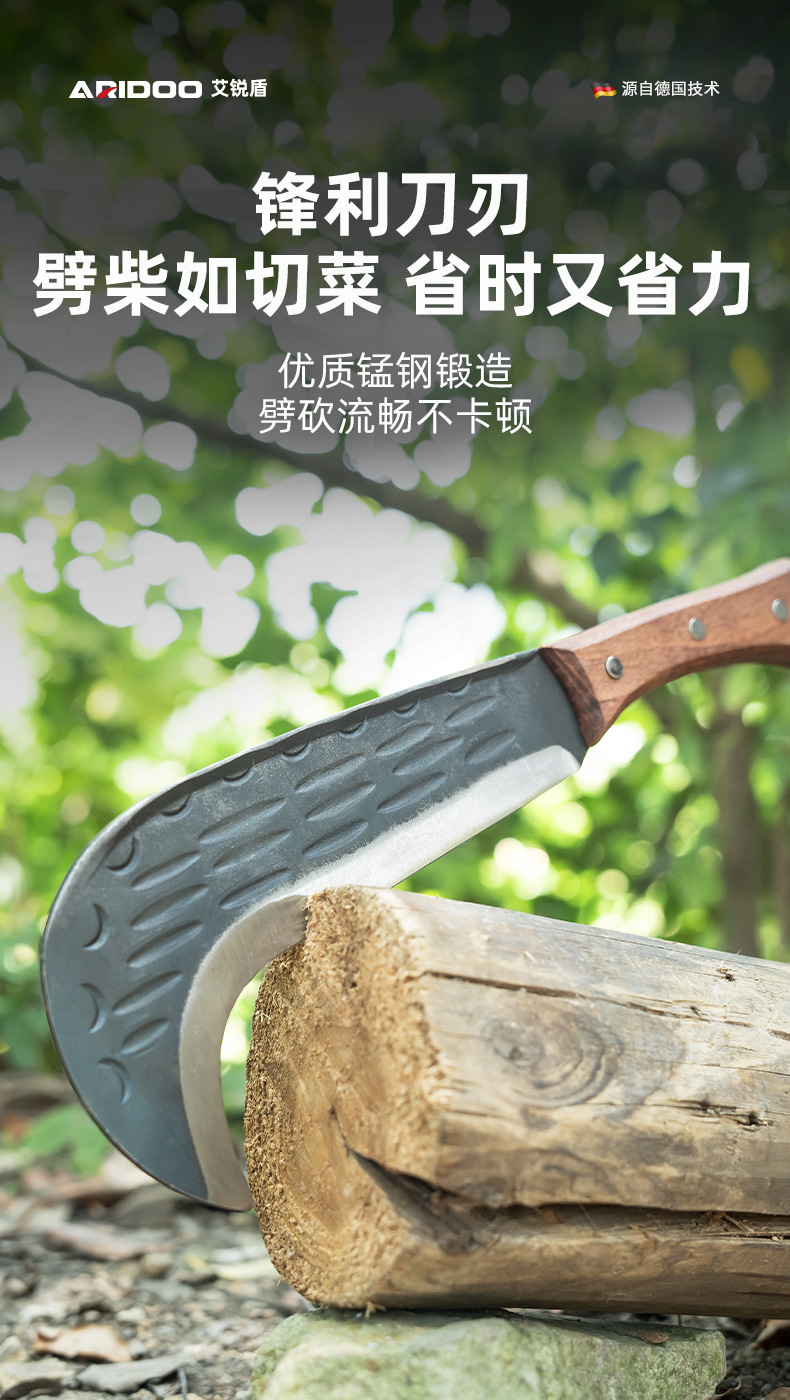 手鍛造薪割り刀、農作業用三日月刀、昔ながらの家庭用薪割り刀、キャンプ用アウトドア山道薪割り刀