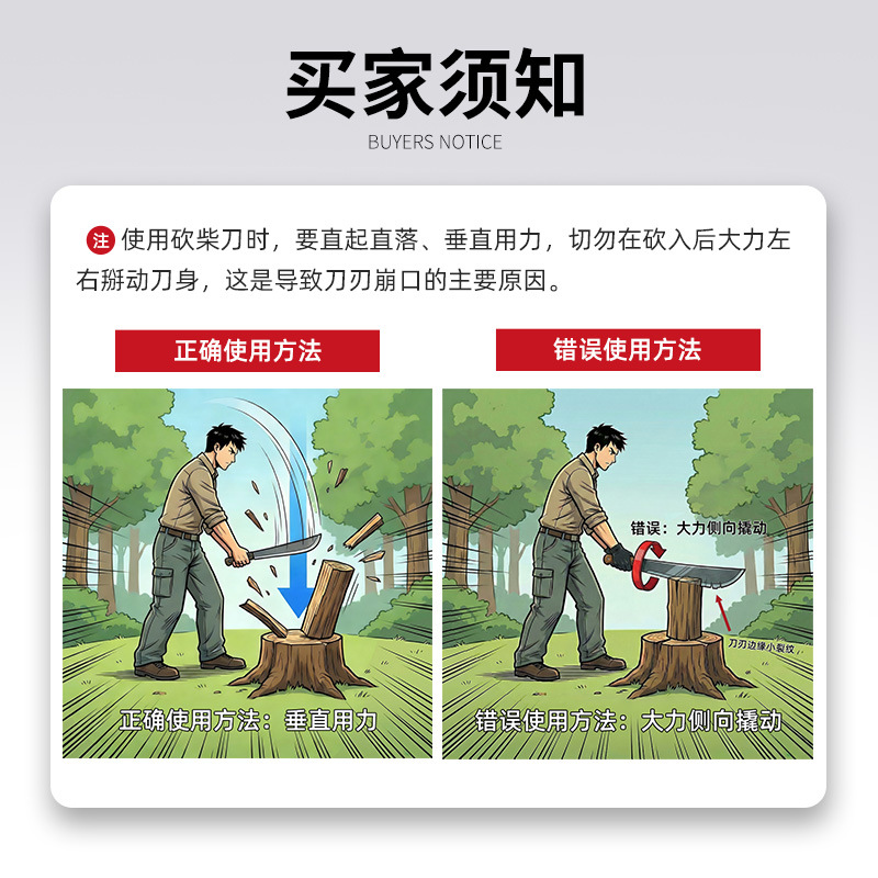 代发锰钢砍柴刀伐木刀家用劈柴户外劈砍竹子加厚锰钢劈柴必备神器