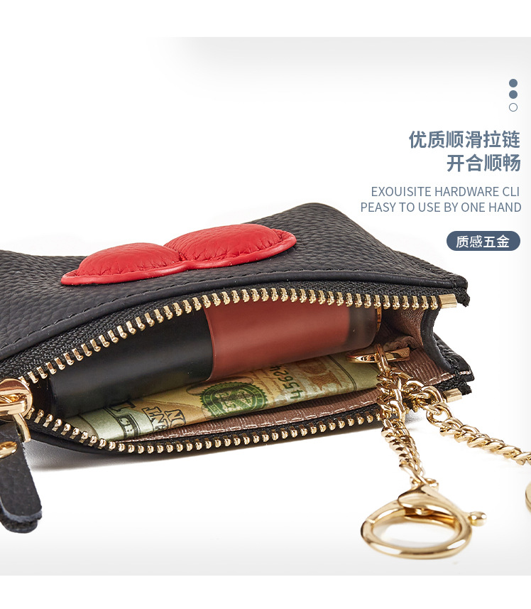 头层牛皮拉链爱心钥匙包可爱ins口红包迷你钥匙扣硬币包零钱包