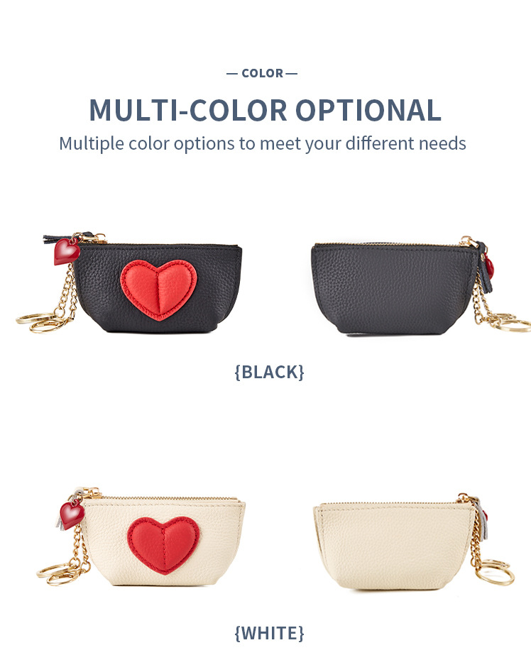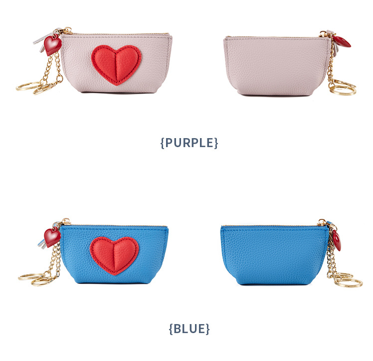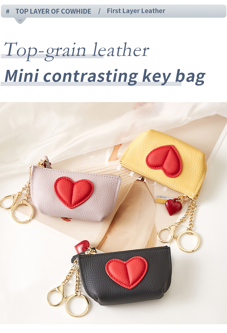 头层牛皮时尚撞色爱心小钱包女可爱迷你真皮钥匙扣收纳零钱包女生