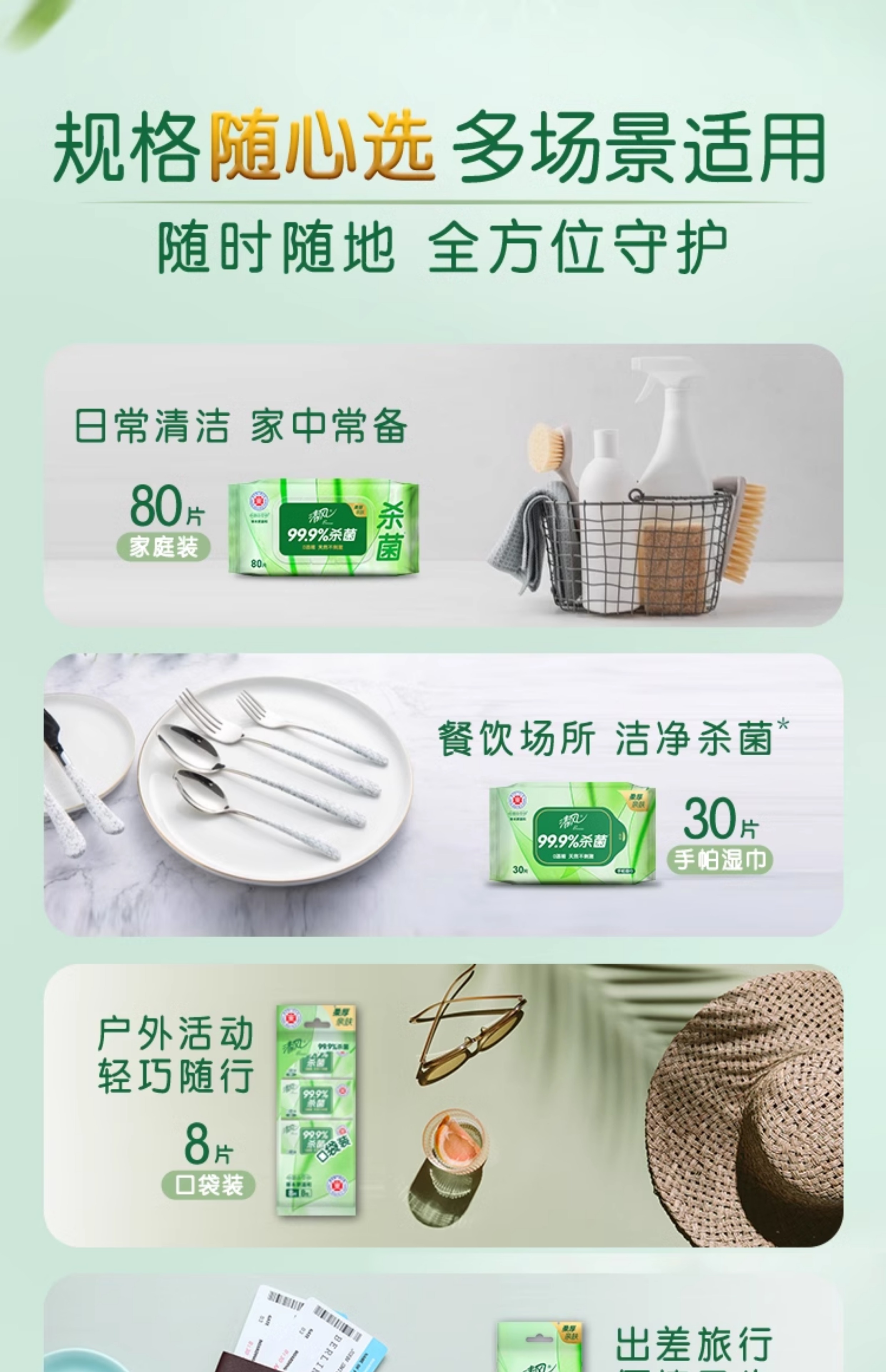 清风御本草湿巾杀菌亲肤无刺激抽取式湿巾80抽大包家用学生实惠装