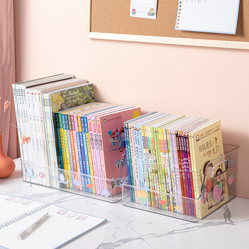 デスクトップ透明収納ブックボックスアクリル収納整理箱学生雑物収納かごテーブルに絵本かごを載せる