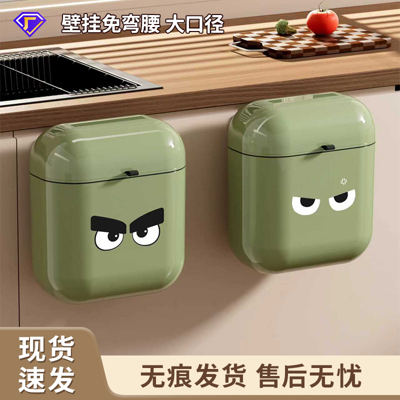 垃圾桶家用厨房免打孔壁挂式免弯腰带盖橱柜门厨余杂物桶纸篓跨境