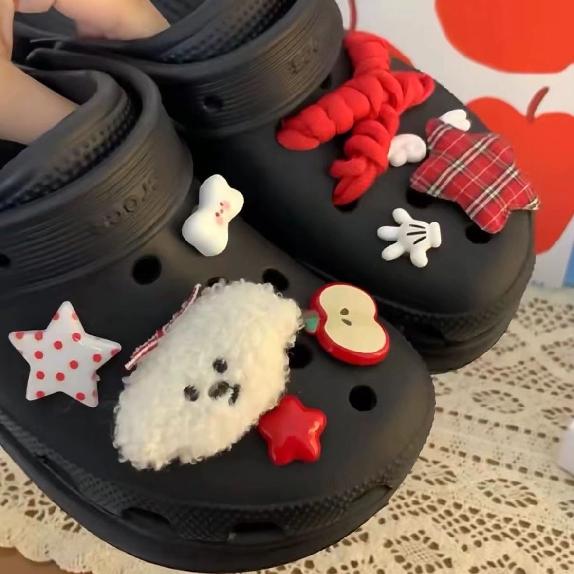 オリジナルのかわいいリンゴの白い犬の赤い星のぬいぐるみの靴の花の穴の靴の装飾の百合の甘い取り外し可能な靴のボタン