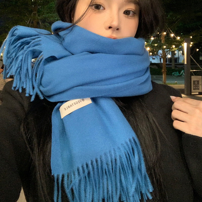 青い模造カシミヤのマフラーの女性の金2024の新しい冬の韓国版は薄い青いマフラーを厚くして2つのマントを組み合わせます。