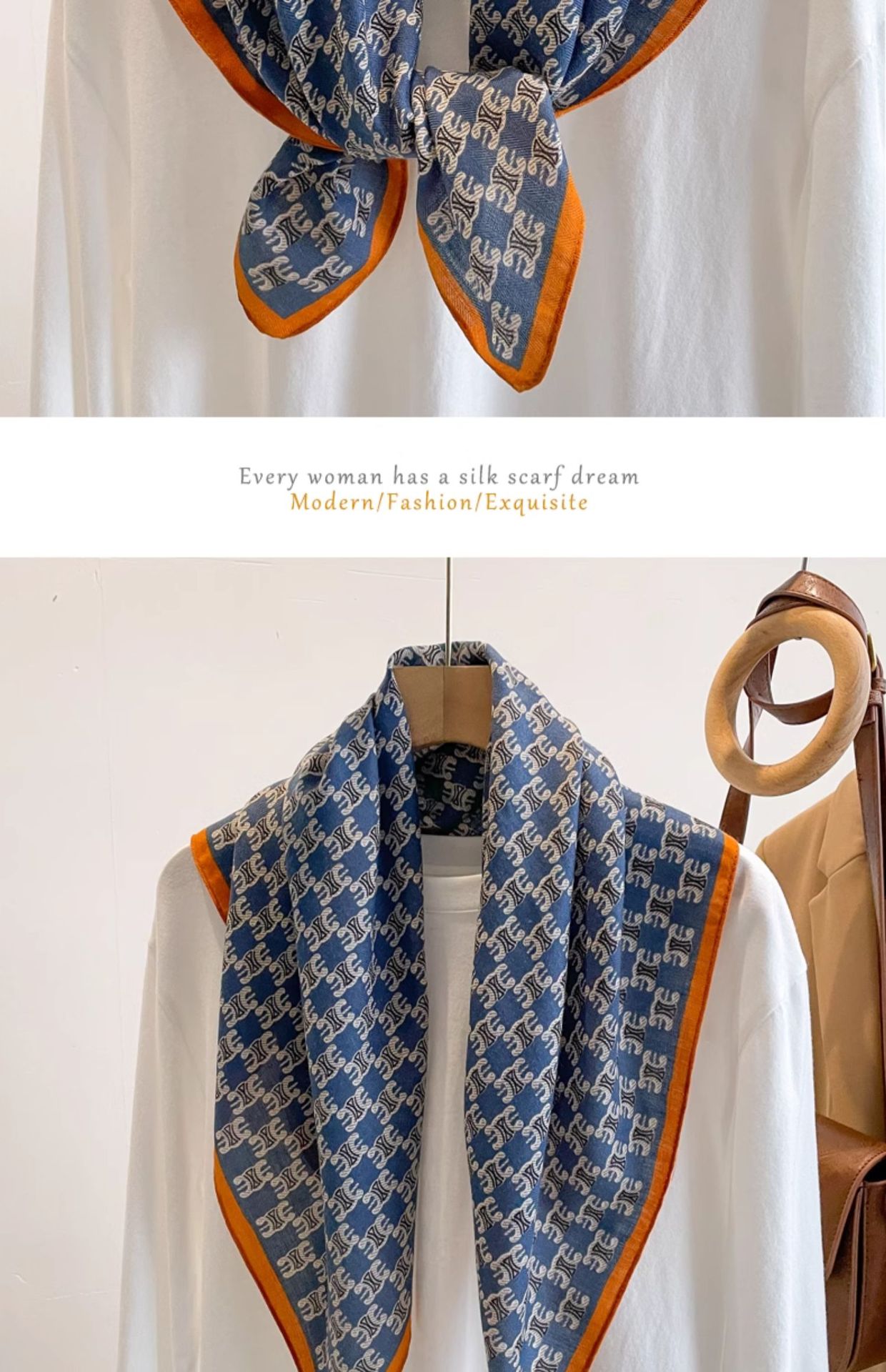 英伦马车70仿真丝棉麻小方巾女复古百搭系脖子小丝巾围巾薄款领巾