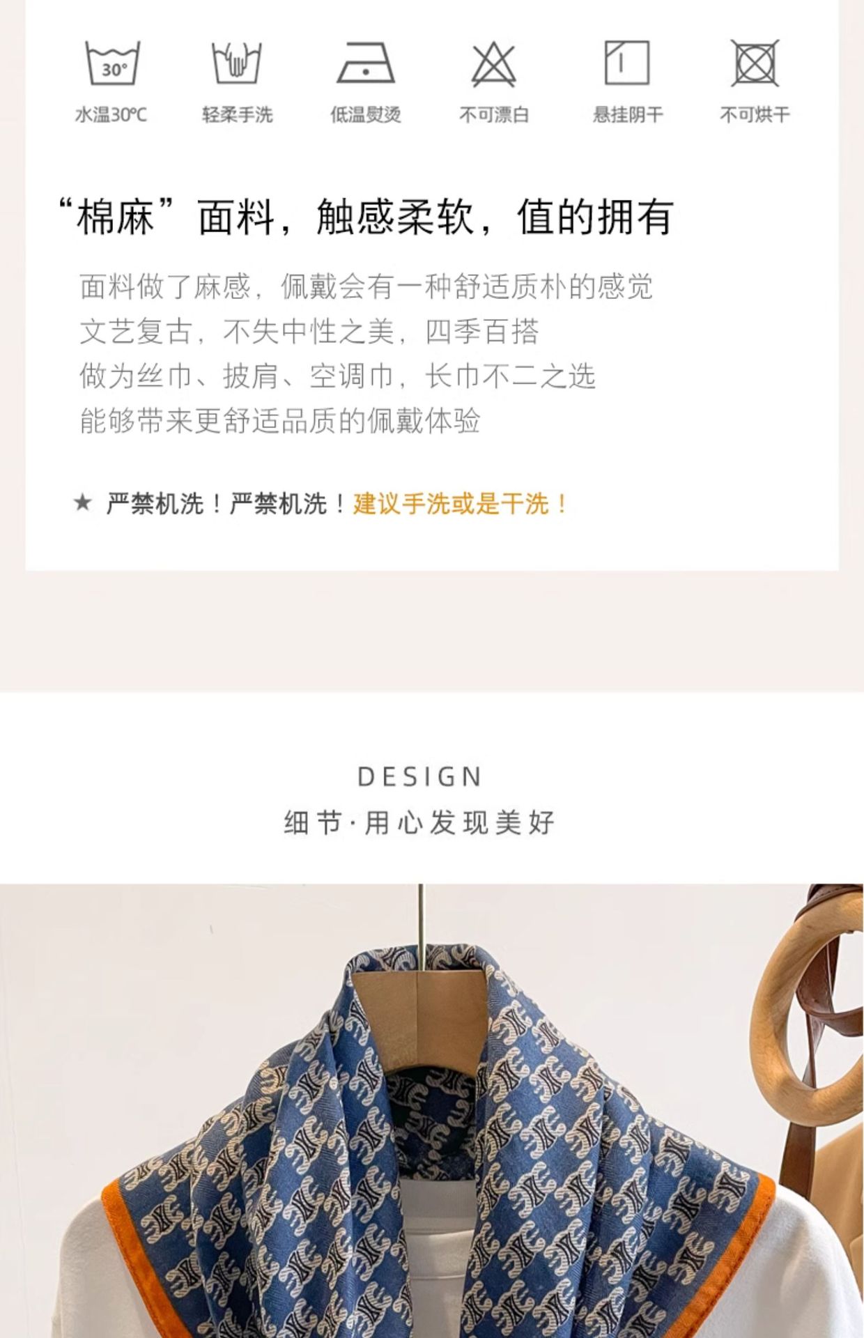 70黑白色腰果花棉麻小方巾丝巾女款春秋冬季围脖子领巾高级感围巾