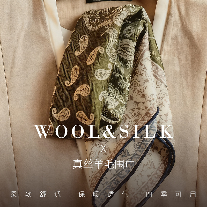 2025秋冬新款时尚百搭通勤保暖丝毛丝巾女高级感轻奢真丝羊毛方巾