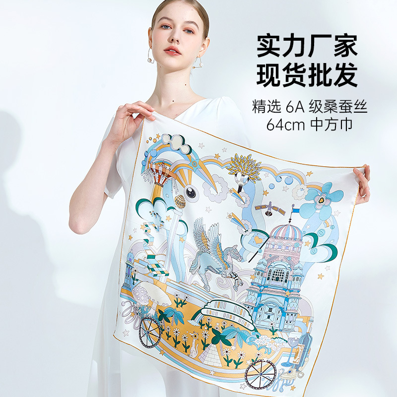 【卸売り】春夏シルクプリントのシルクタオル女性の優雅なファッションマフラーのストールの大きさのスカーフの精巧なギフトボックス