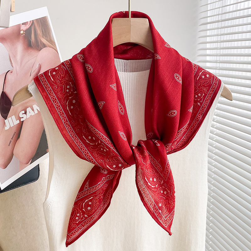 法式红色70CM棉麻丝巾小方巾女春秋护颈薄款围巾领巾亚麻头巾发带