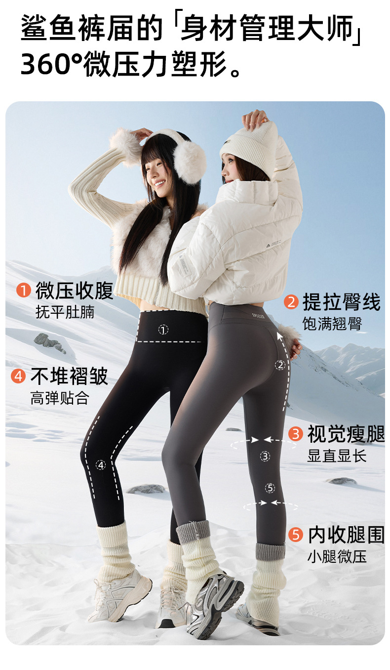女性用シャークパンツ、秋冬スタイル、冬用ベルベット、2025年新作、厚みのある腹部引き締めヒップアップタイトヨガレギンス
