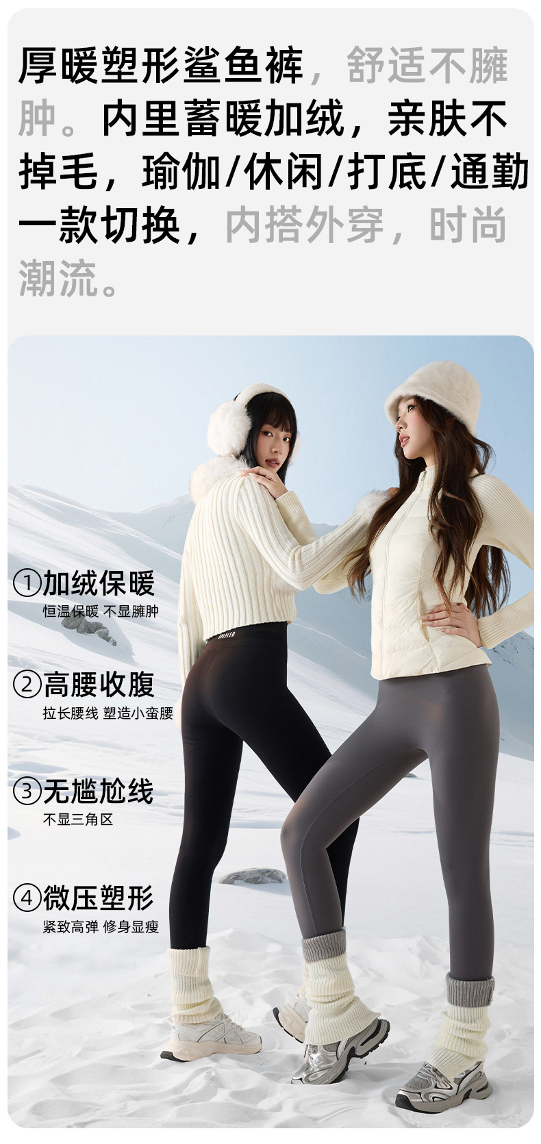 新疆看雪穿搭防风鲨鱼裤冬季加绒外穿2025秋冬高腰打底超厚芭比裤