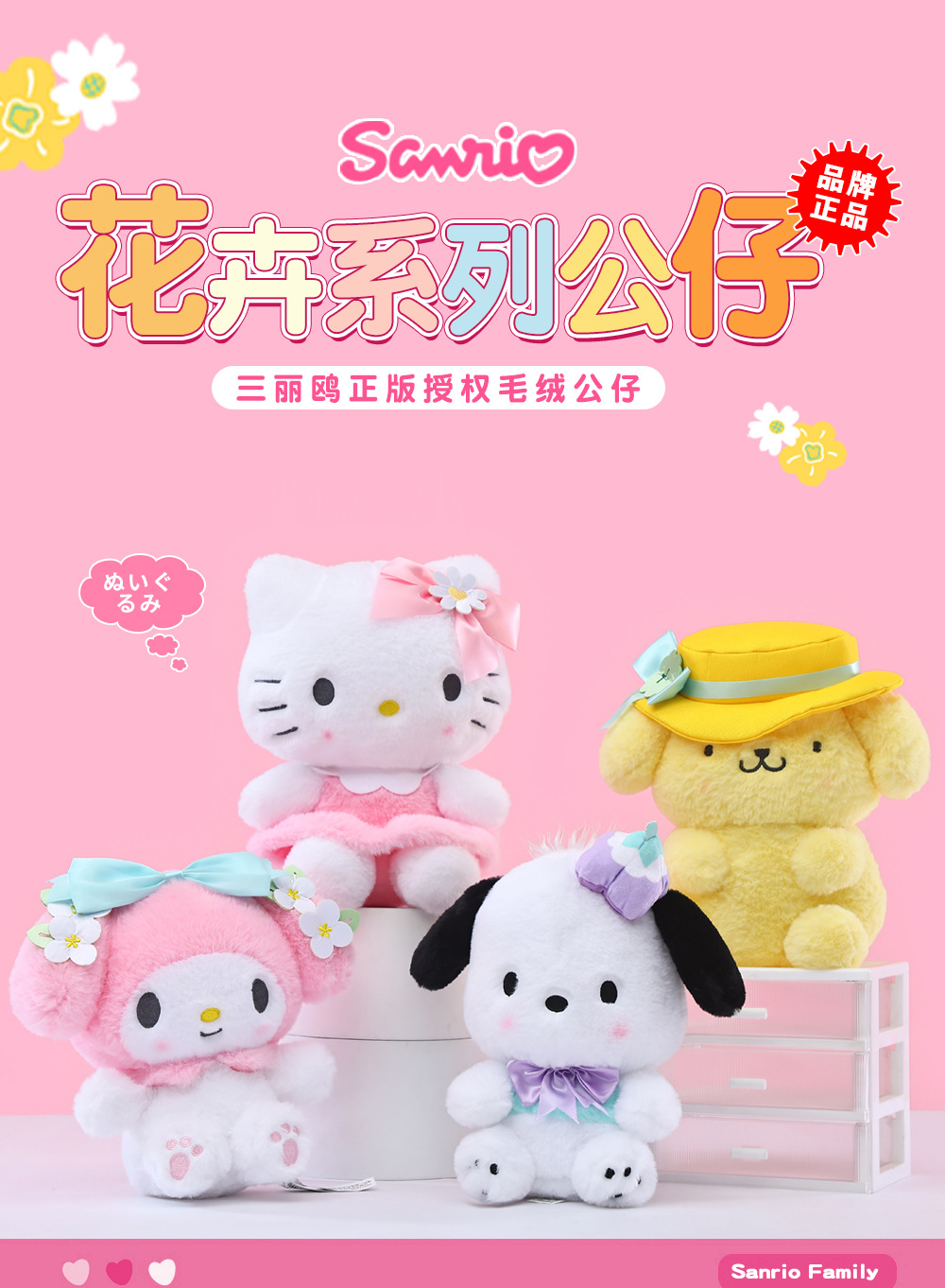 正版三丽鸥花卉系列库洛米公仔美乐蒂hellokitty毛绒玩具公仔礼物