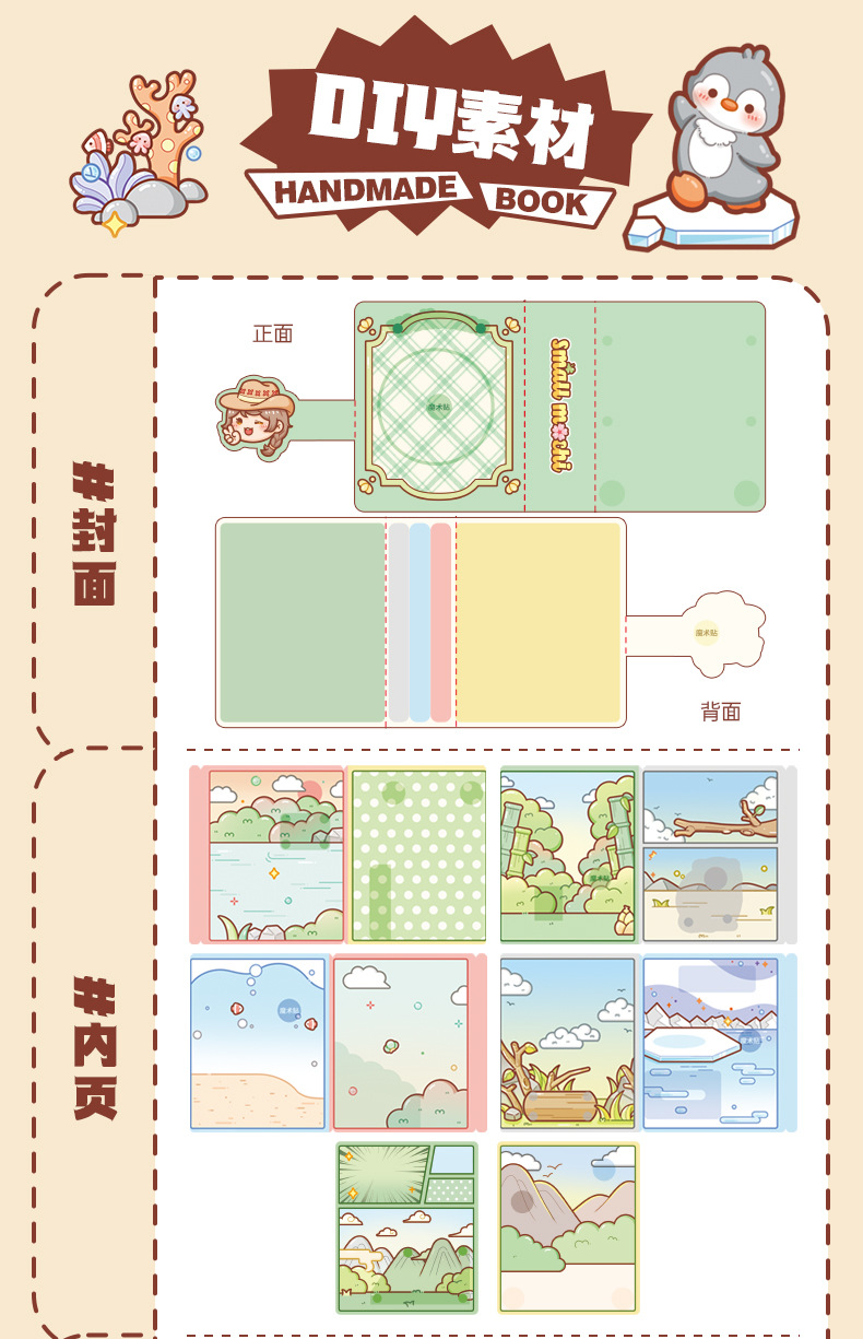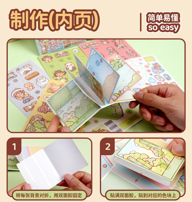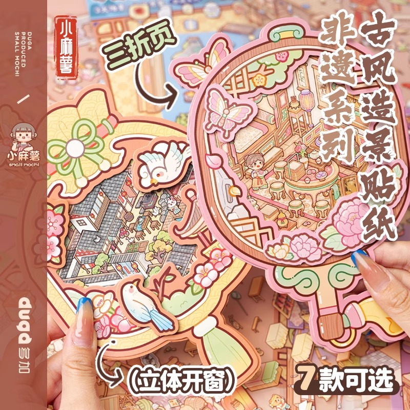 小麻薯古风果冻贴纸趣味手工安静书创意三折页微缩场景换装贴纸本