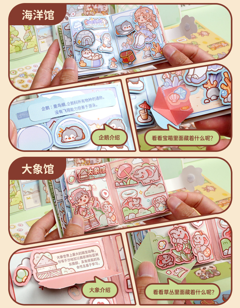 小麻芋江南旅行記静かな本シール創意無裁断立体シーン静かな本diyシール装飾
