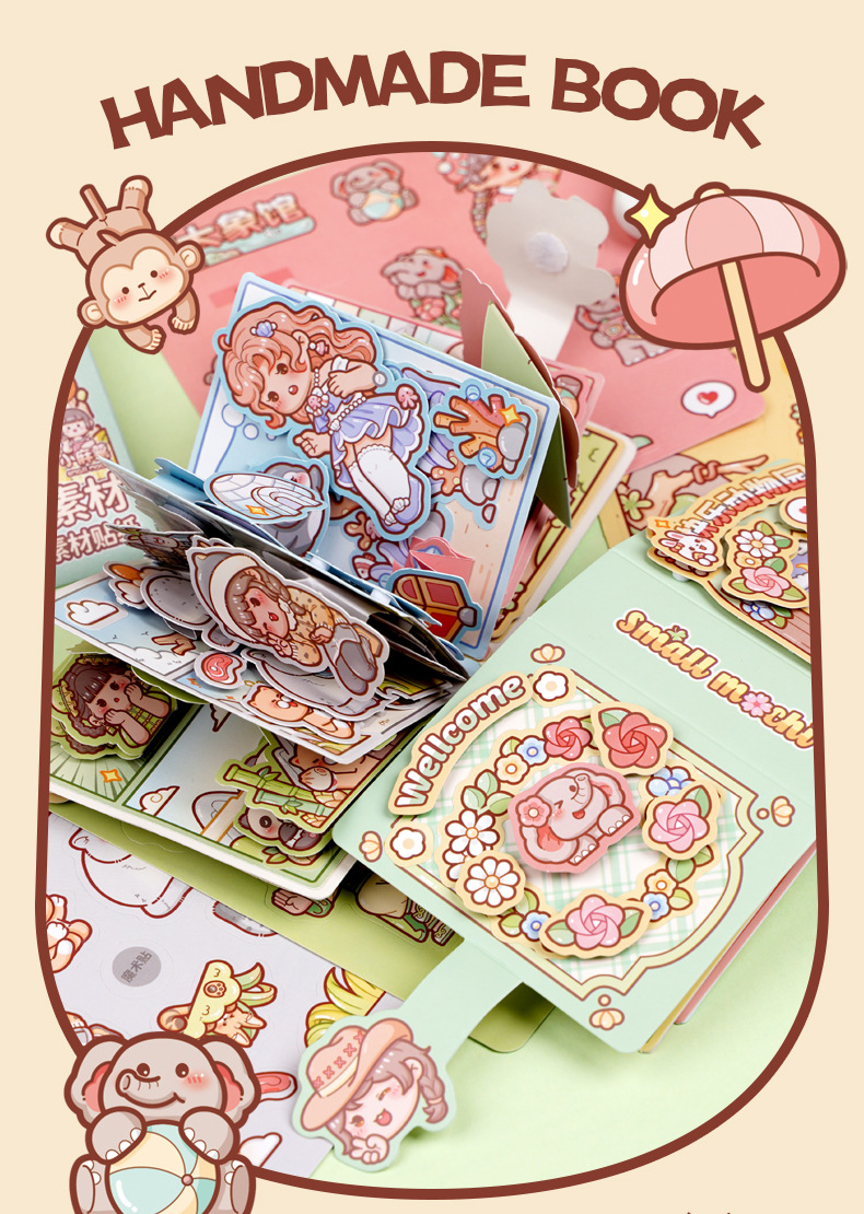 小麻薯换装贴纸迷你豆豆本可爱免裁剪手账贴纸创意场景换装贴纸本