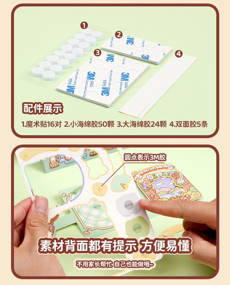 小麻薯果冻贴纸安静书diy可爱女孩高颜值免裁剪手工场景立体贴纸