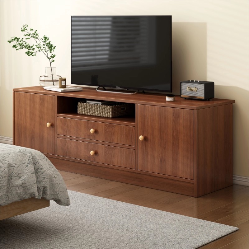 テレビキャビネットリビングルーム床置き無垢材エコボードアンティークスタイルウォールナットカラー家庭用小型タイプ高さテレビキャビネット