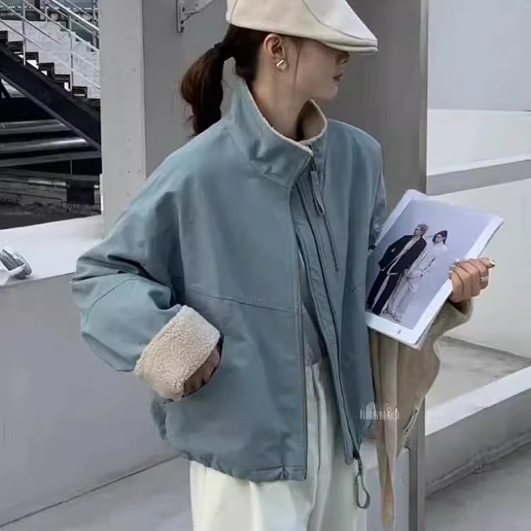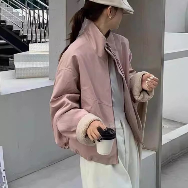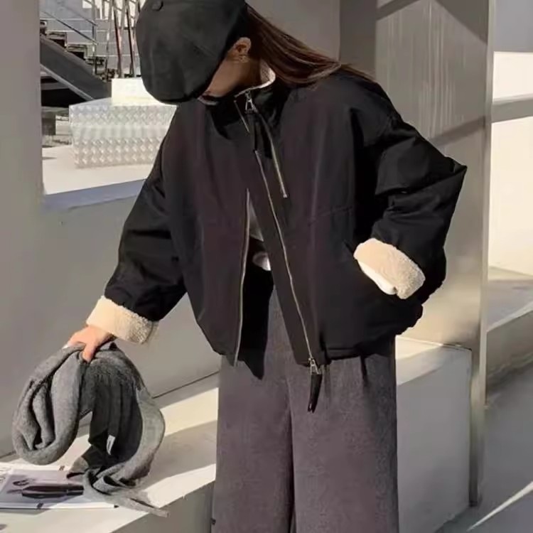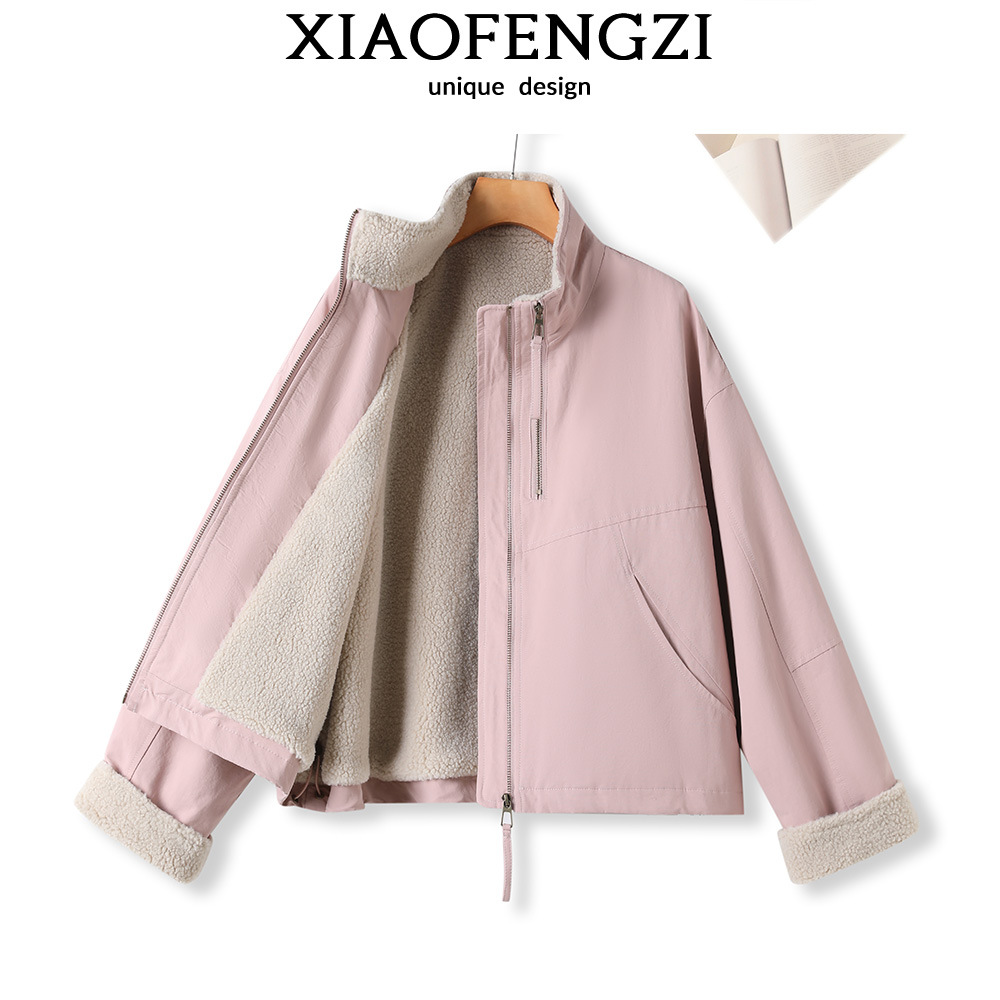羊羔毛短款派克服女2025冬款韩系休闲冲锋衣宽松小个子加厚保暖棉