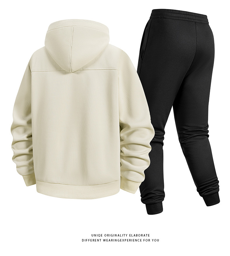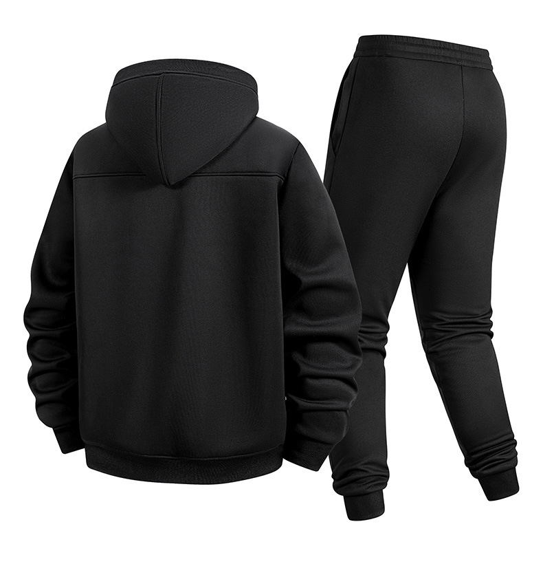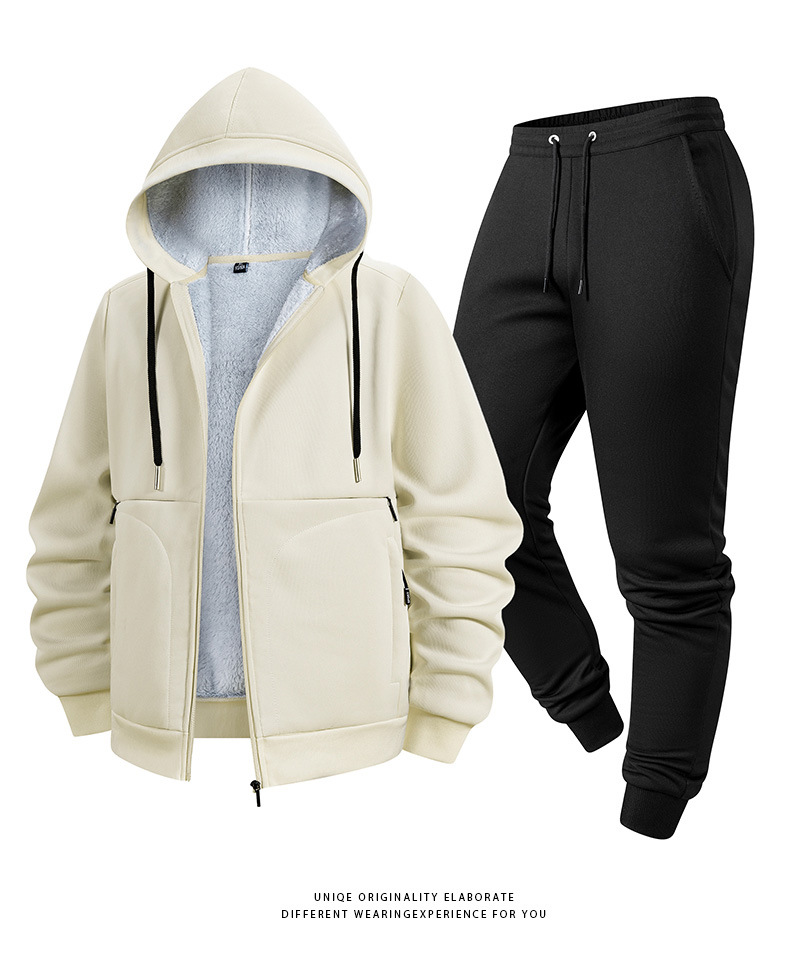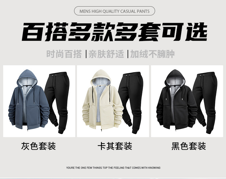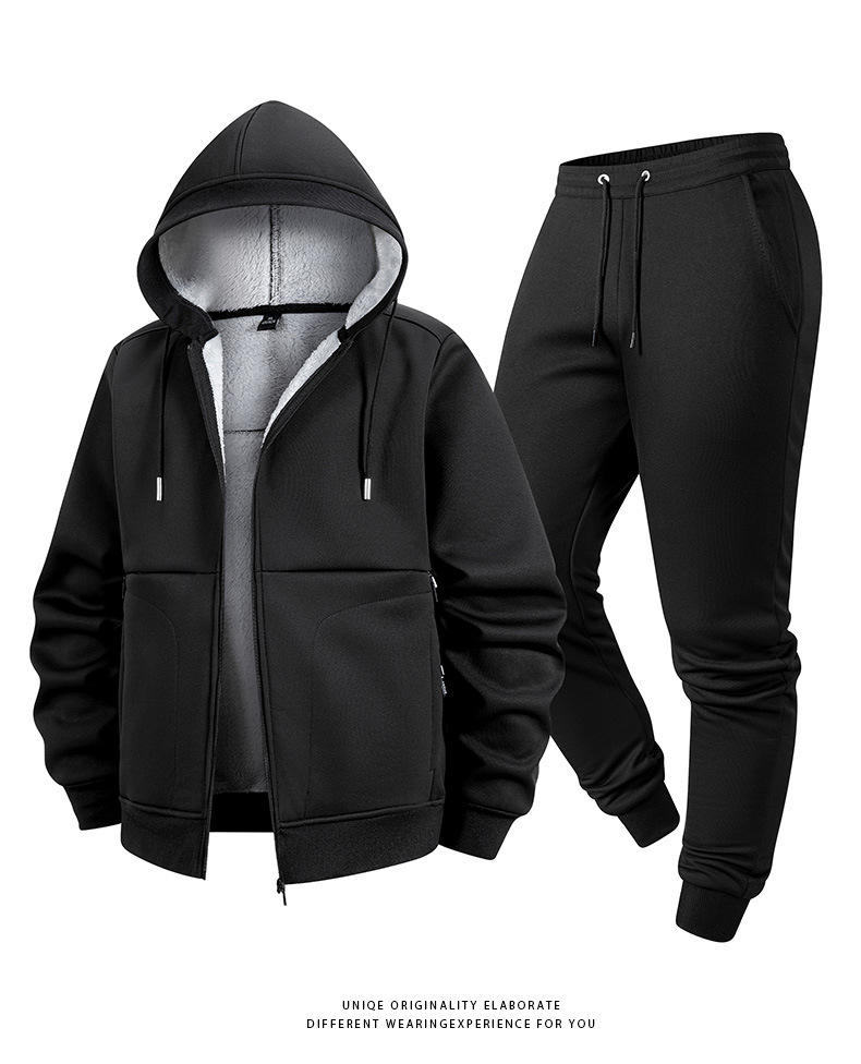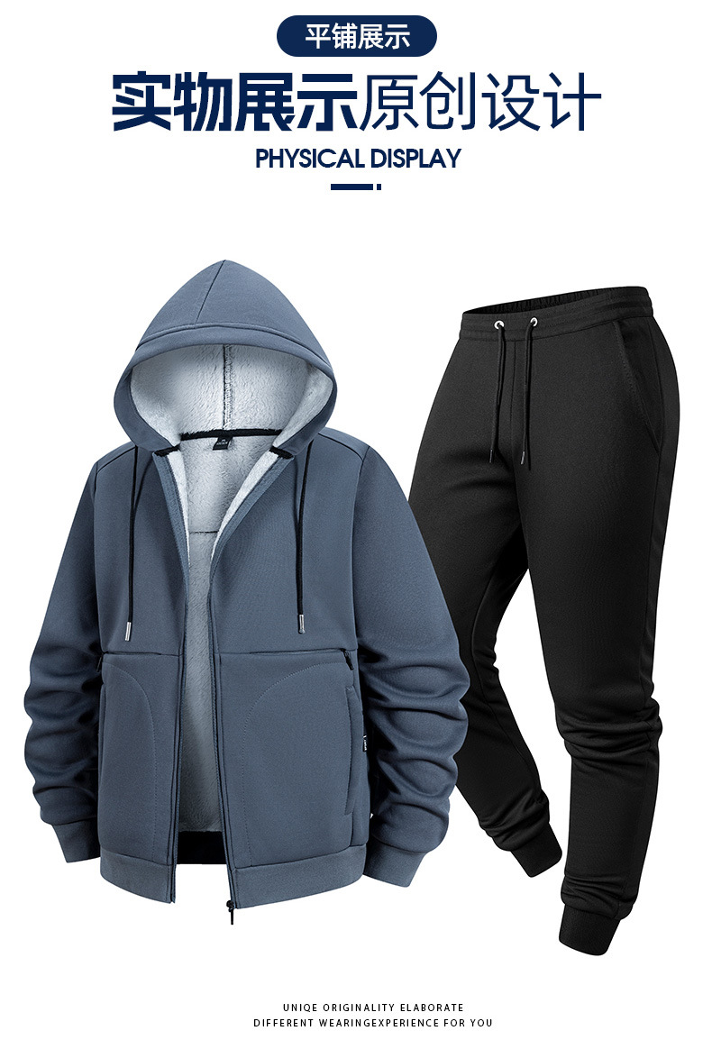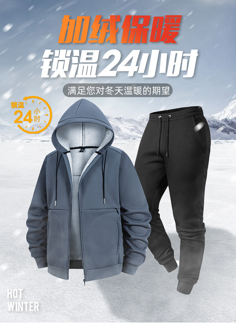 冬季新款跨境羊羔绒运动套装加绒厚卫衣男开衫连帽外套休闲两件套