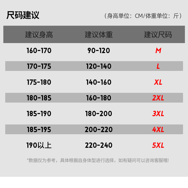 尺码 M,L,XL,2XL,3XL,4XL,5XL