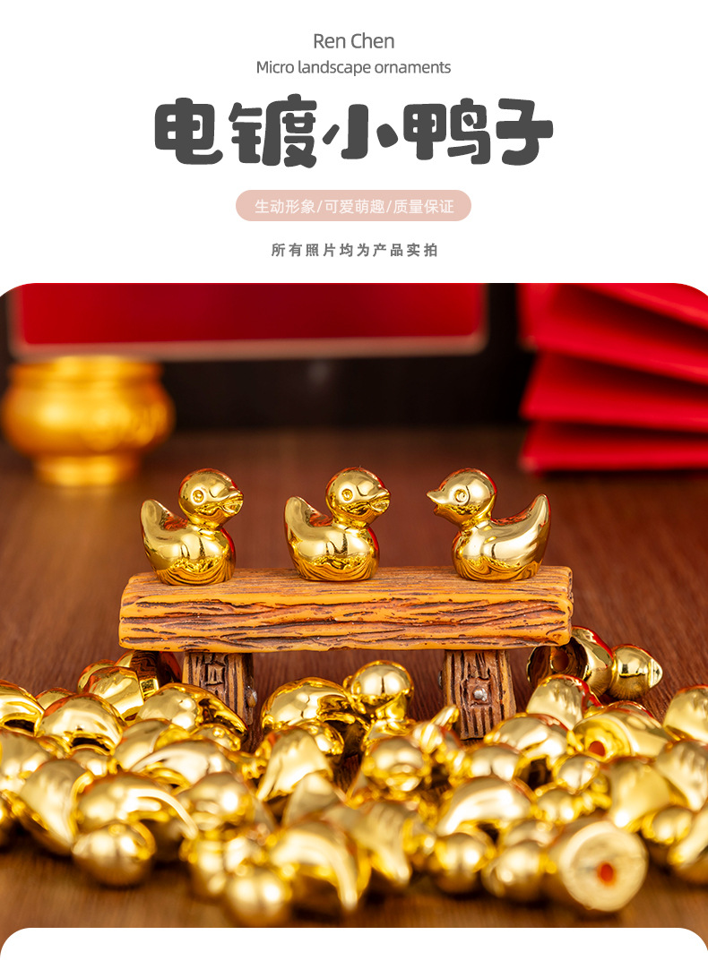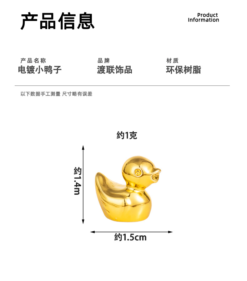 跨境电镀高透金色小鸭子 diy树脂工艺品装饰萌粒桌面摆件