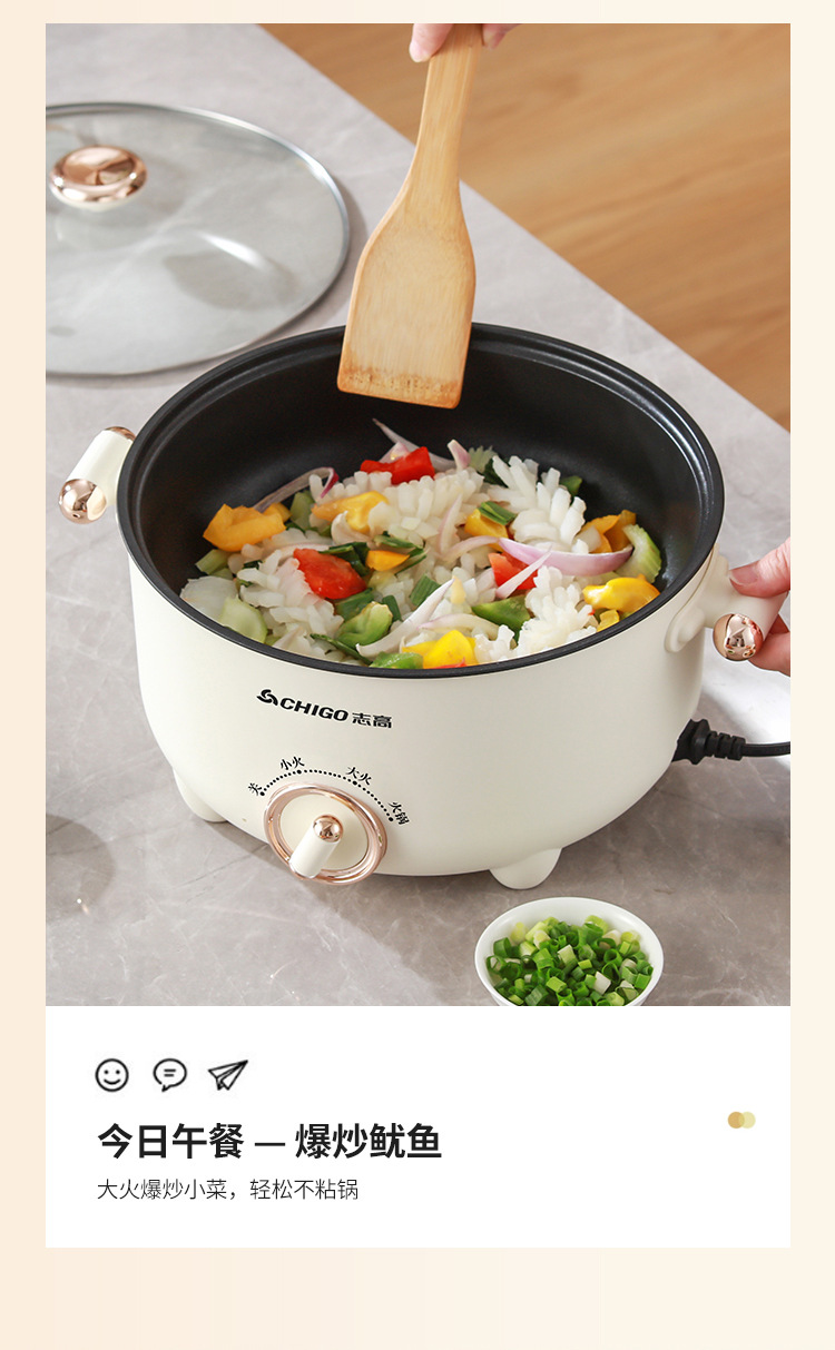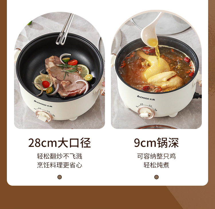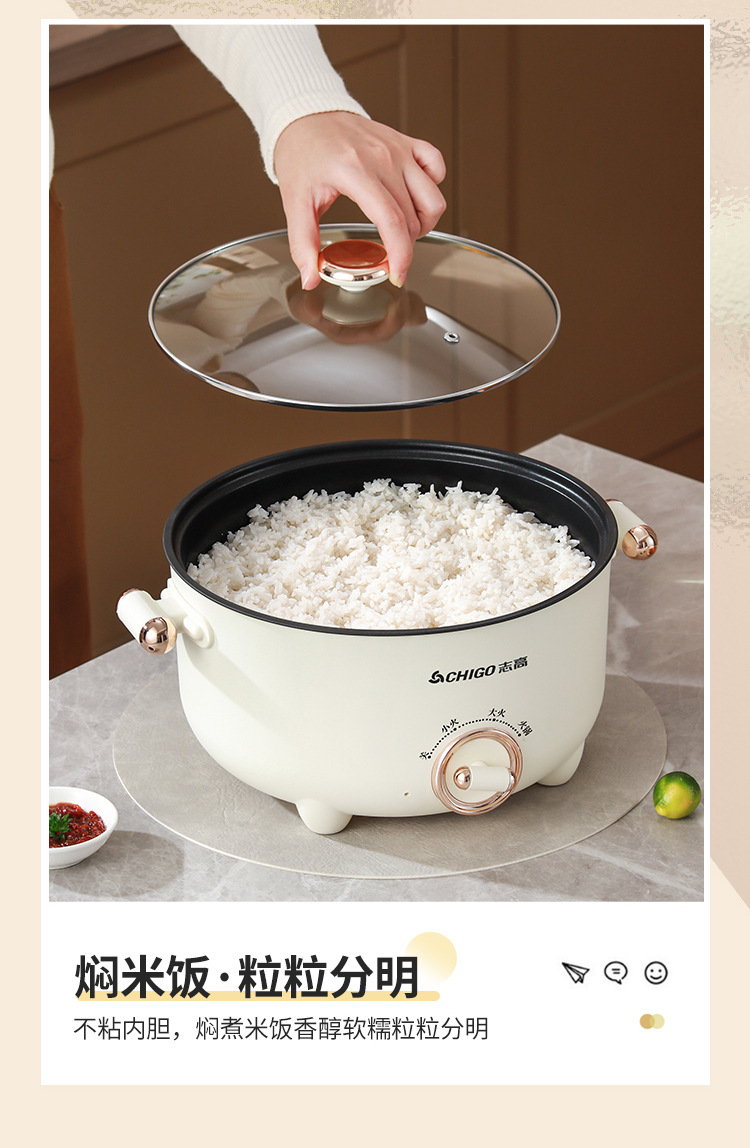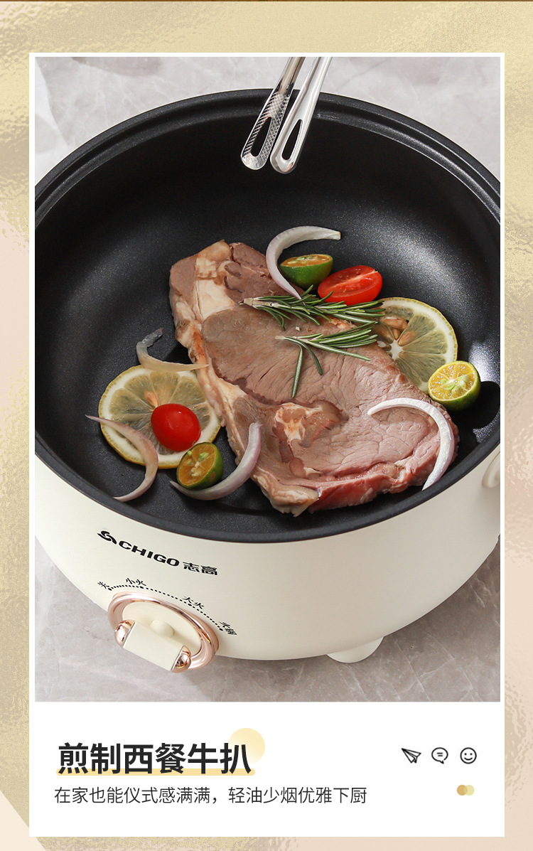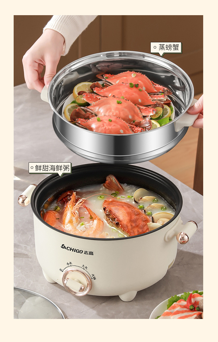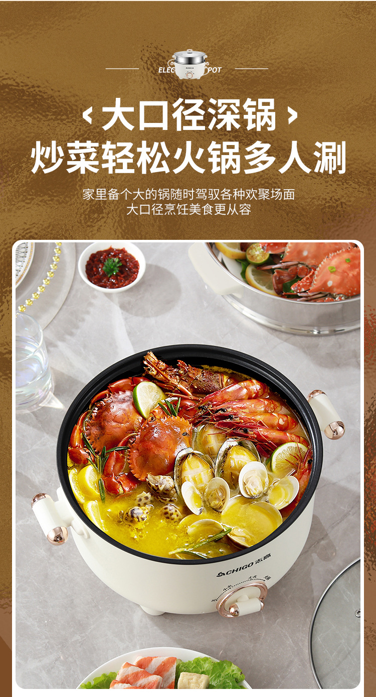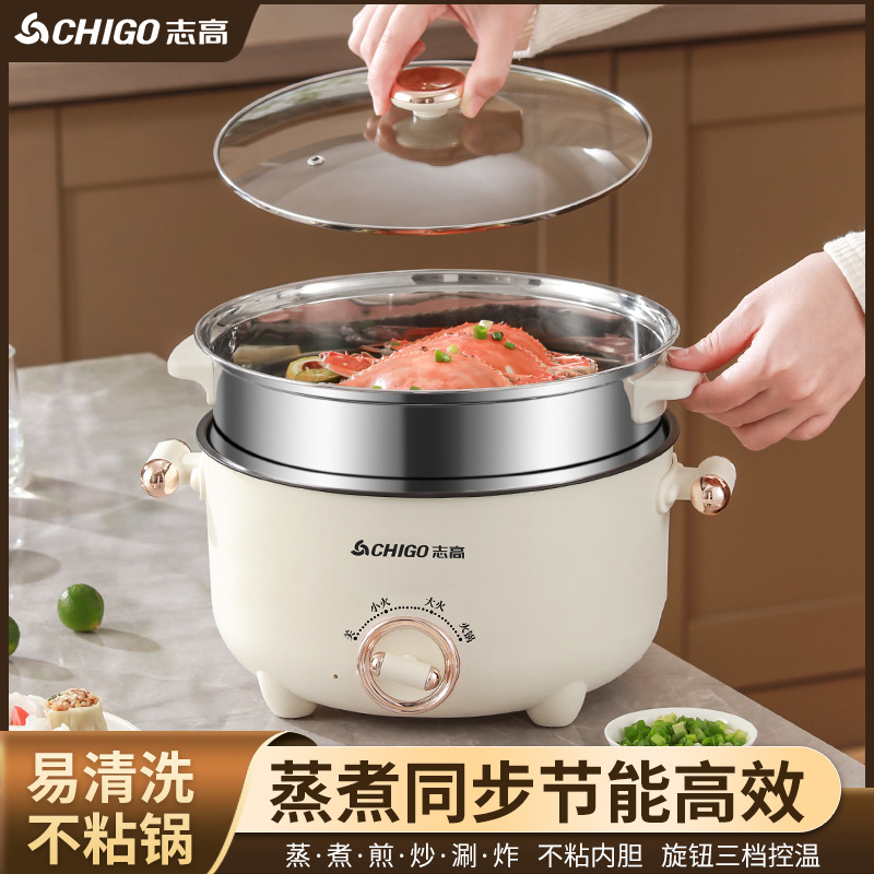 跨境 志高电煮锅4L大容量家用料理蒸煮煎炒多功能一体不粘电火锅