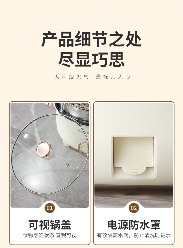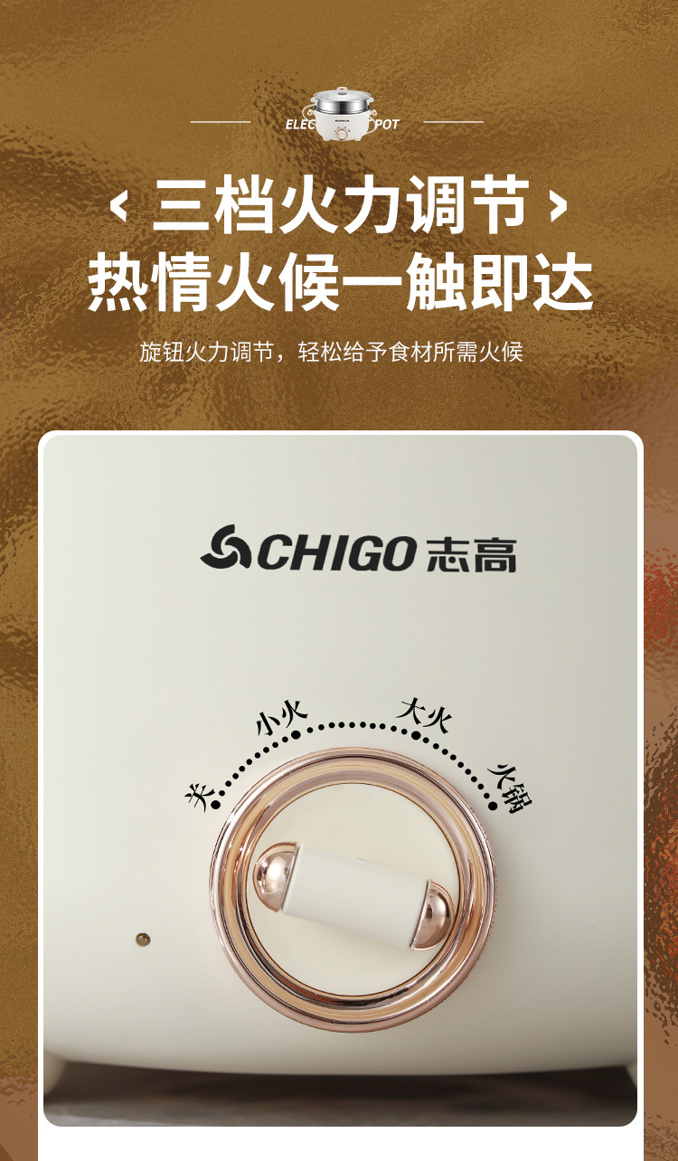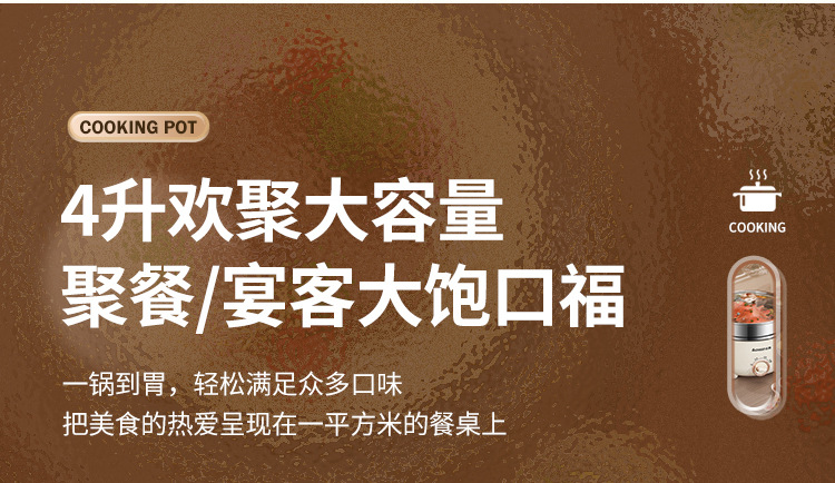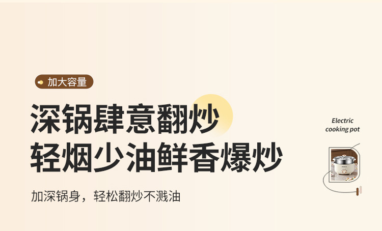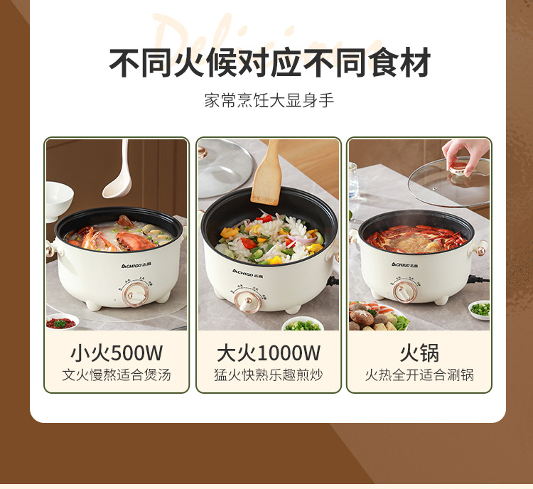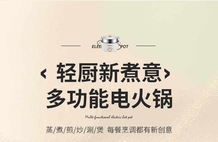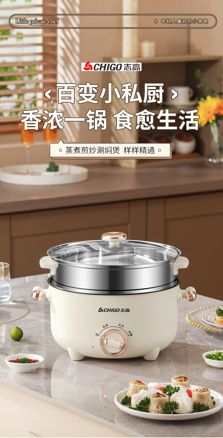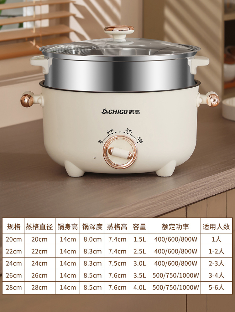 跨境 志高电煮锅4L大容量家用料理蒸煮煎炒多功能一体不粘电火锅