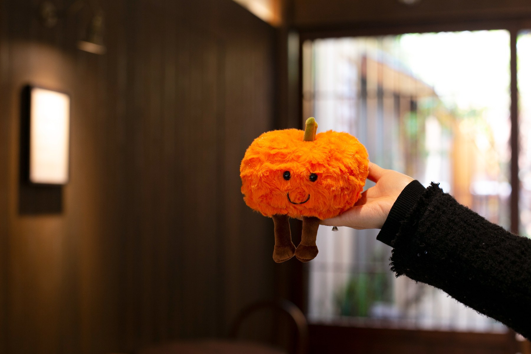 オレンジのぬいぐるみのシミュレーションを考えています。オレンジのぬいぐるみのベッドで寝ています。