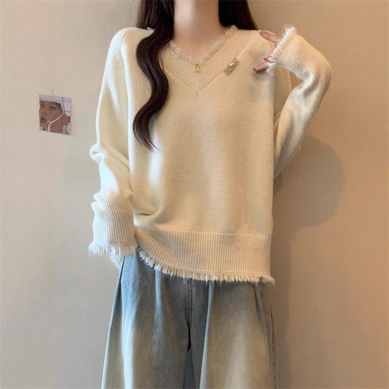 复系慵懒风韩系设计感毛衣女新款2025秋冬宽松外穿破洞针织衫