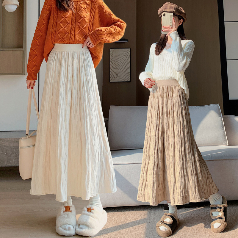 高級秋冬スカート、ミドル丈、肉感カバー、人気のAラインスカート、女性用スリム立体ニットアンブレラスカート