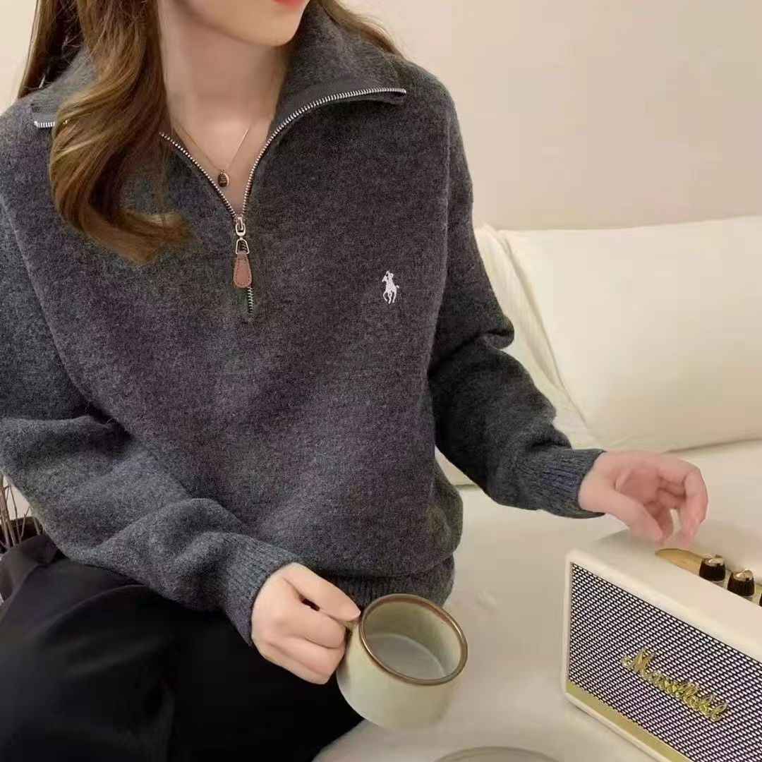 2024秋冬ファスナー高襟セーター女性カーディガン