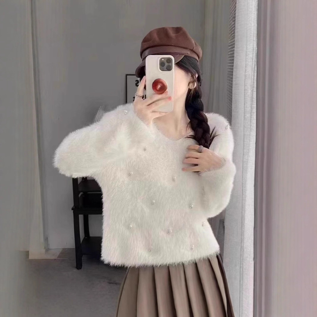 韓国版の新しい光沢のある新年クリスマスセーター女性のための秋と冬の新しいミンクベルベットデザインソフトワックスルーズトップ