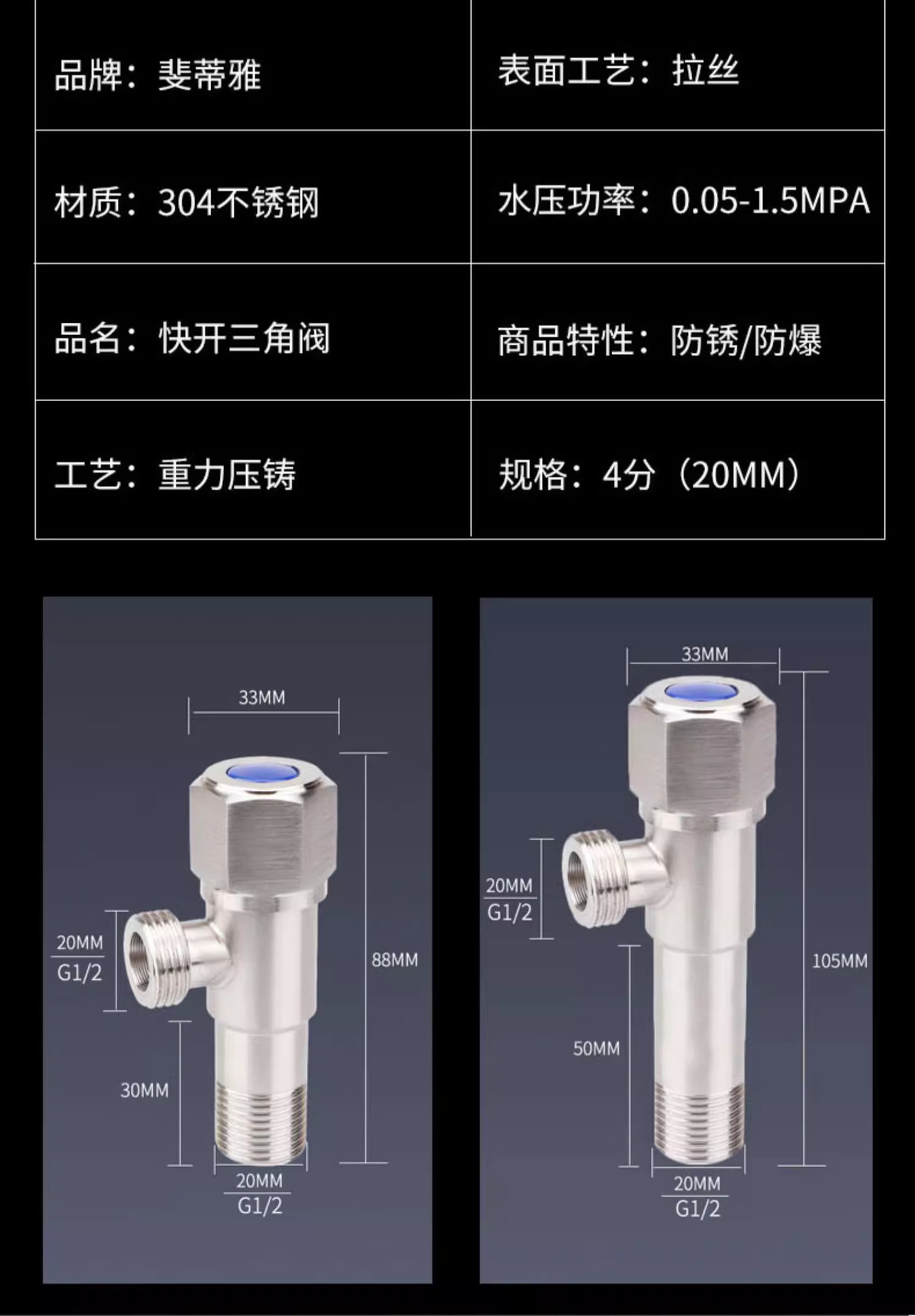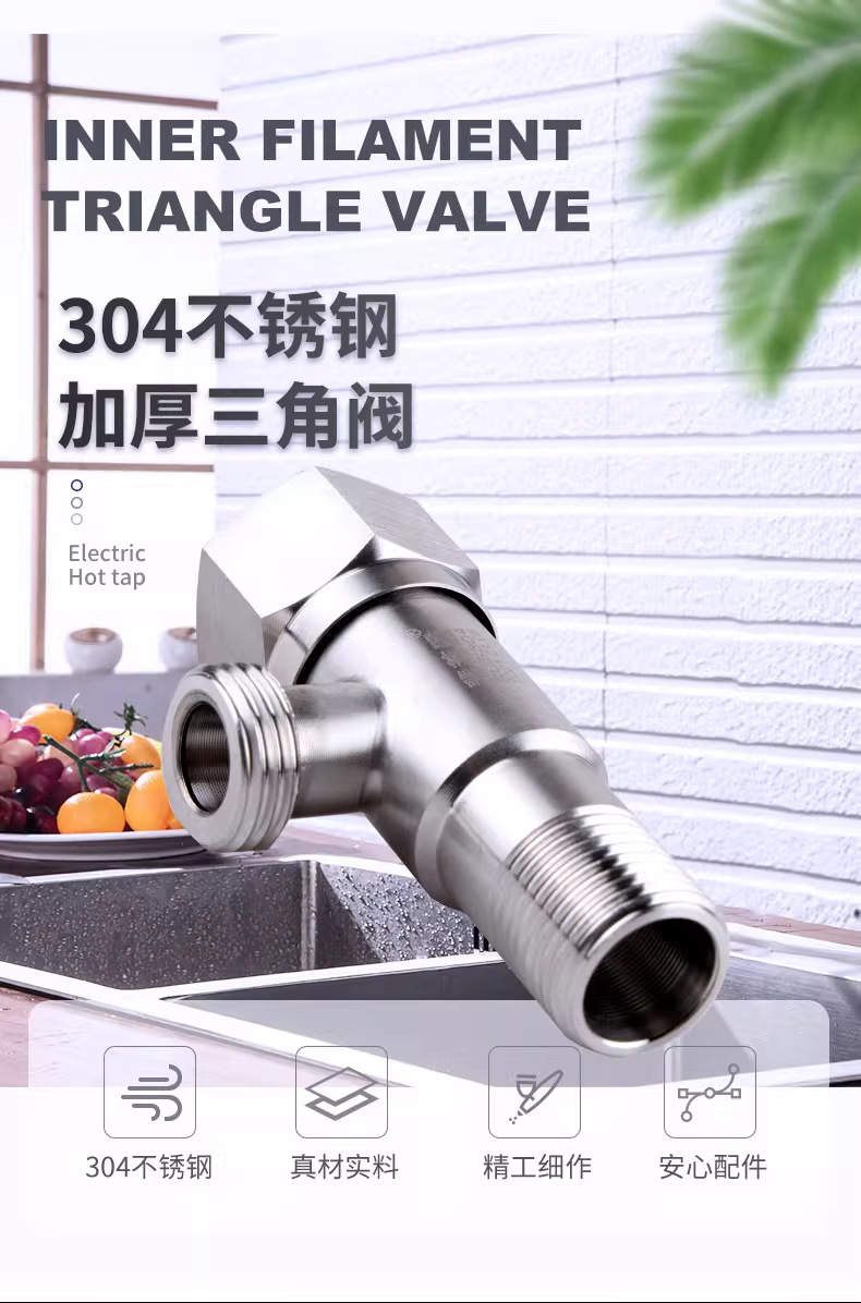 304不锈钢三角阀加厚冷热止水阀家用角阀开关热水器马桶4分通用