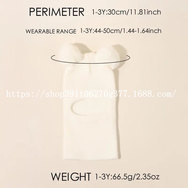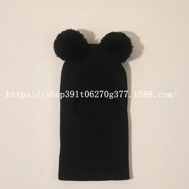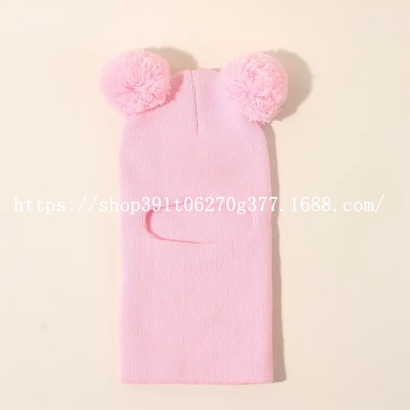 秋冬套头帽子儿童双球护耳连体帽纯色可爱毛线针织男女宝宝一体帽