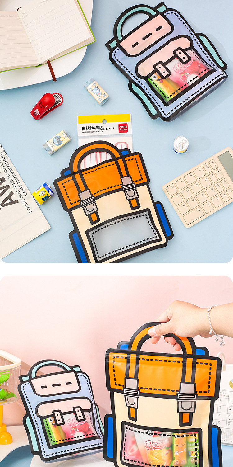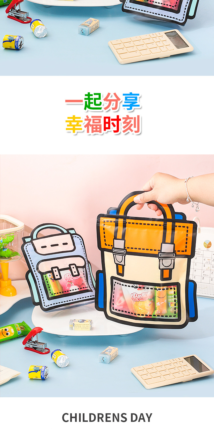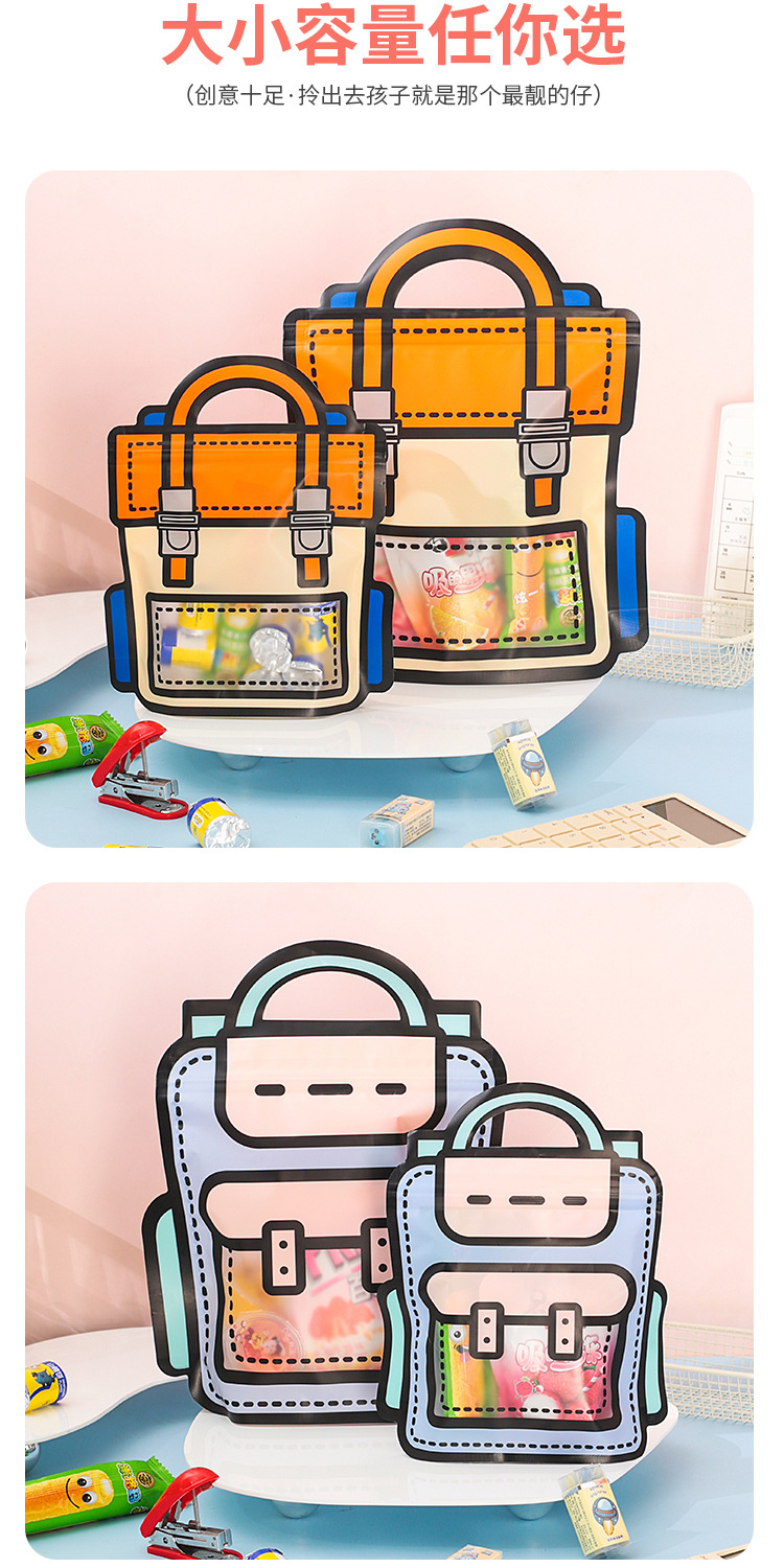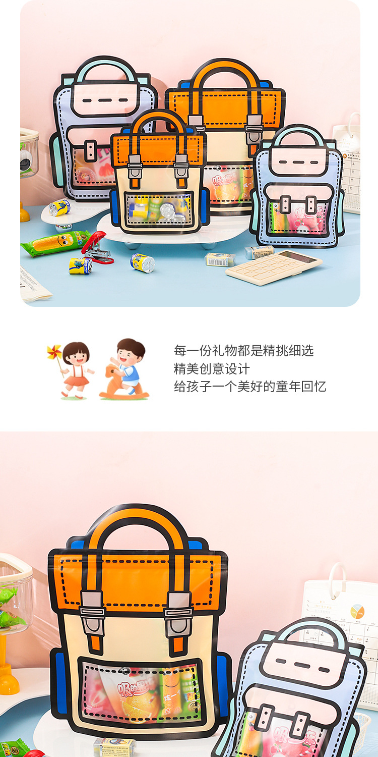 规格型号 紫色书包袋 小号18*21+6cm,紫色书包袋 大号24*28+8cm,橙色书包袋 小号18*21+6cm,橙色书包袋 大号24*28+8cm,蓝色小狗零食袋 18*20+7cm,粉色小兔零食袋 18*20+7cm,收音机零食袋 小号20*19+6cm,收音机零食袋 大号26*24+8cm,娃娃机零食袋 小号19*20+6cm,娃娃机零食袋 大号24*26+8cm,小熊书包袋 小号16*21+7cm,小熊书包袋 大号19*25+7cm,彩虹书包袋 小号16*21+7cm,彩虹书包袋 大号19*25+7cm,黄色可爱萌宠零食袋19.5*17.5+7cm,粉色可爱萌宠零食袋19.5*17.5+7cm