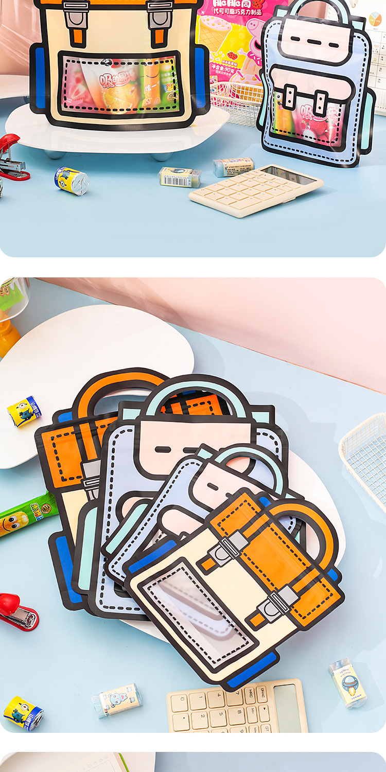规格 黄色可爱萌宠零食袋19.5*17.5+7cm,粉色可爱萌宠零食袋19.5*17.5+7cm,收音机零食袋 大号26*24+8cm,小熊书包袋 小号16*21+7cm,小熊书包袋 大号19*25+7cm,彩虹书包袋 小号16*21+7cm,彩虹书包袋 大号19*25+7cm,紫色书包袋 小号18*21+6cm,紫色书包袋 大号24*28+8cm,橙色书包袋 小号18*21+6cm,橙色书包袋 大号24*28+8cm,娃娃机零食袋 小号19*20+6cm,娃娃机零食袋 大号24*26+8cm,收音机零食袋 小号20*19+6cm,蓝色小狗零食袋 18*20+7cm,粉色小兔零食袋 18*20+7cm