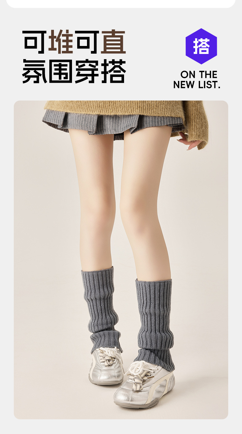 堆堆袜套秋冬季长筒腿袜加厚y2k灰色保暖小腿套针织白色瑜伽袜套