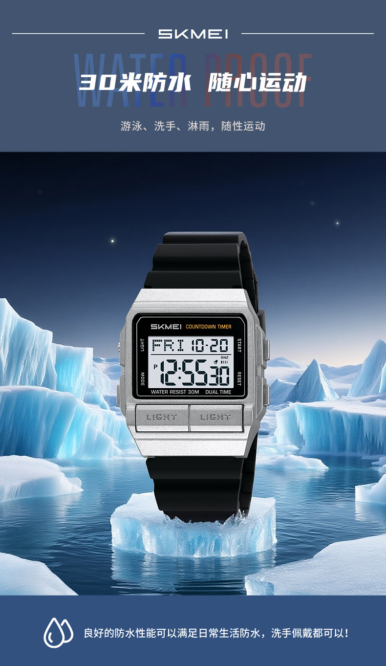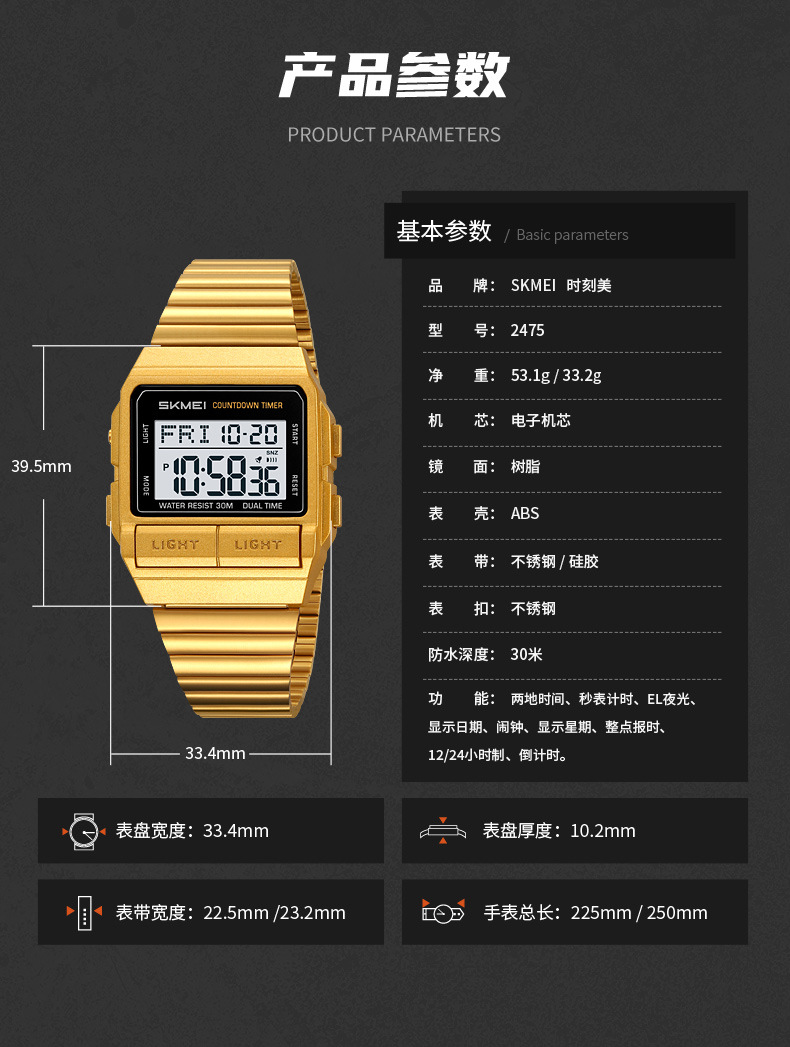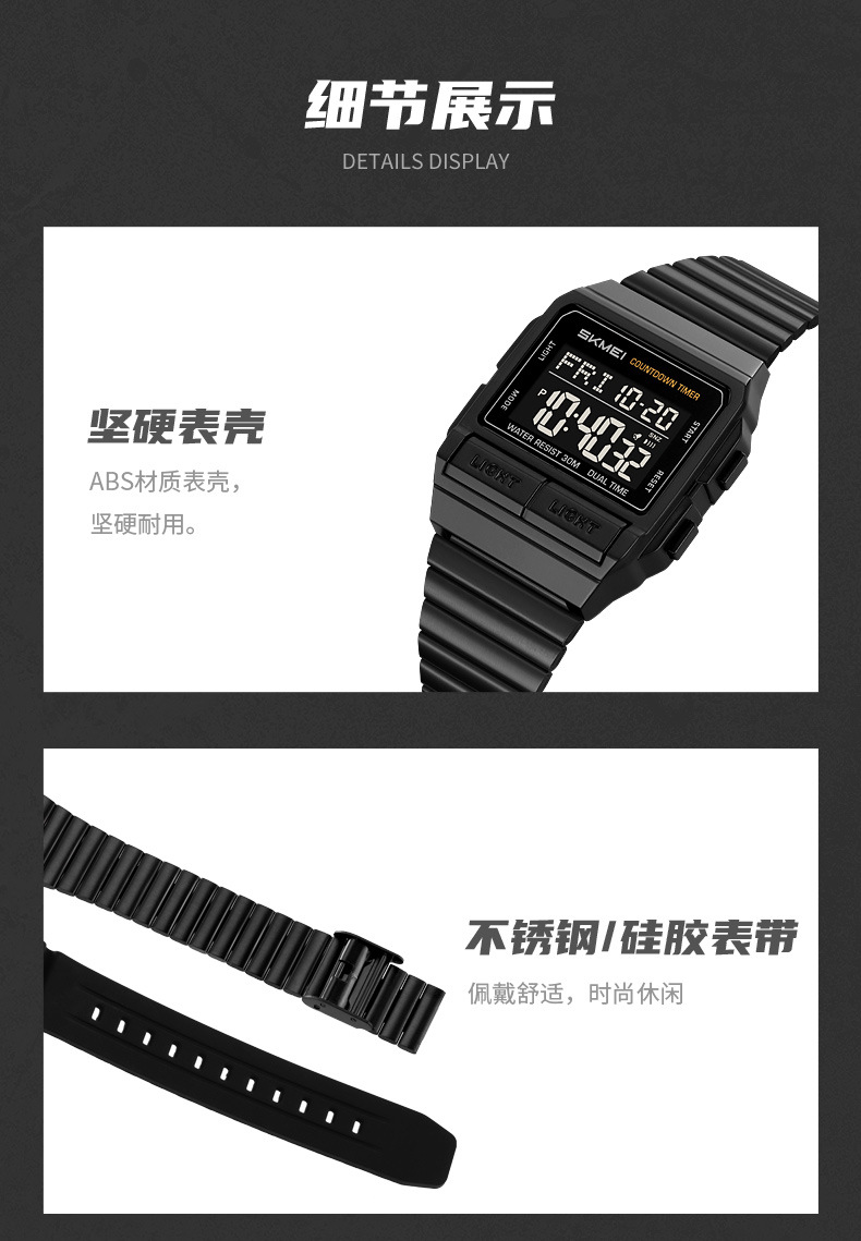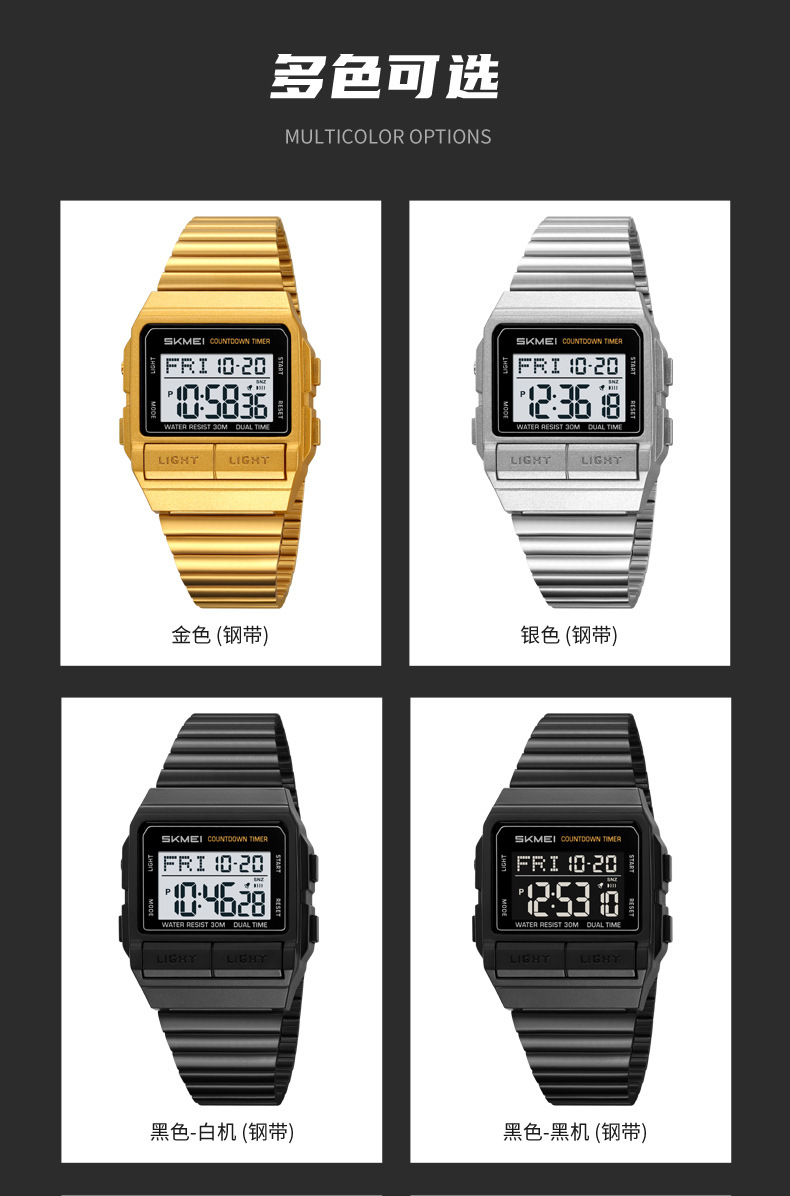 功能:2时间、秒表计时、日期、闹钟、星期、EL夜光、整点报时、12/24小时制、倒计时。