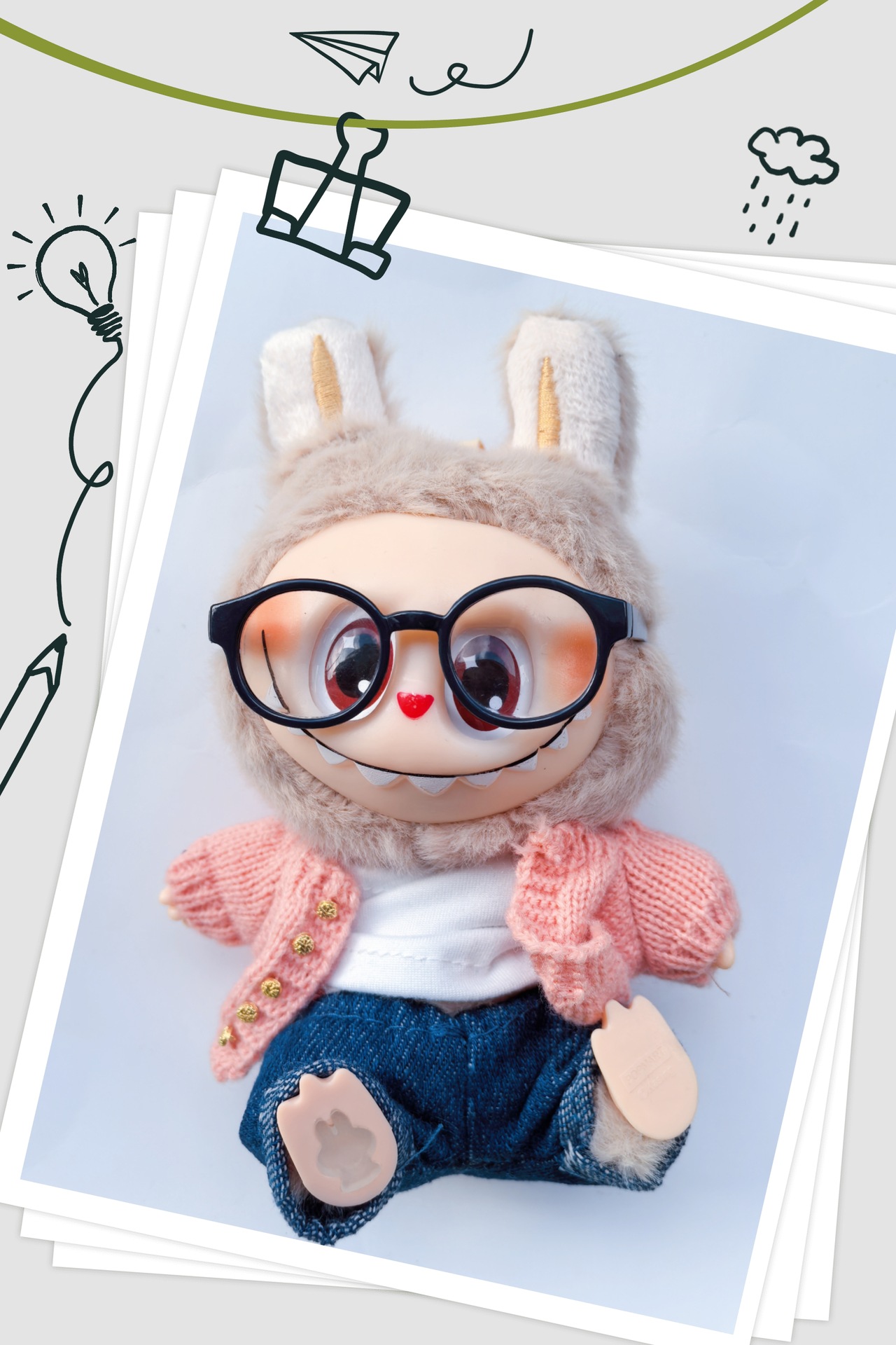 ラブブ人形メガネかわいい漫画人形装飾レンズサングラストレンディなクリエイティブカラフルなクリームメガネ