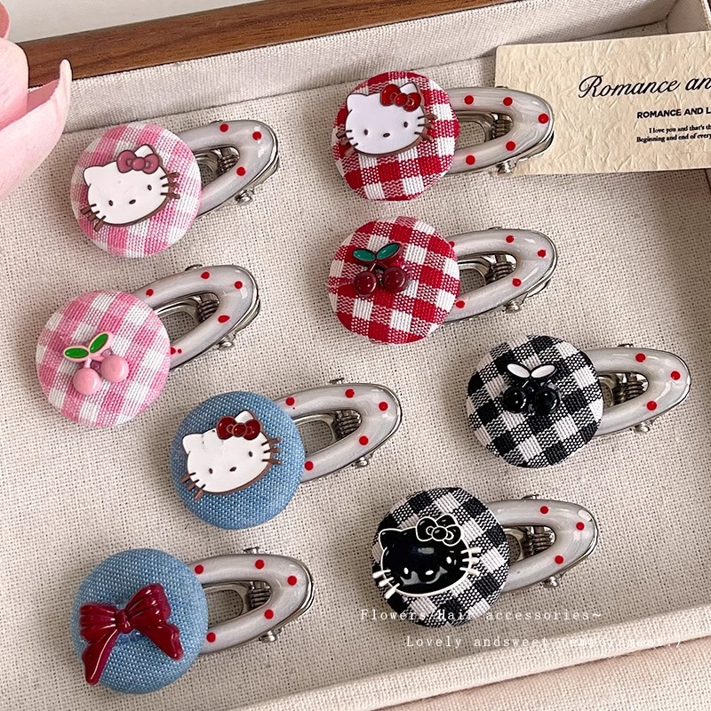 韓国版のチェック柄ボタン漫画人形ヘアピン子供用甘い高価値ガーリーハート前髪サイドヘアピン
