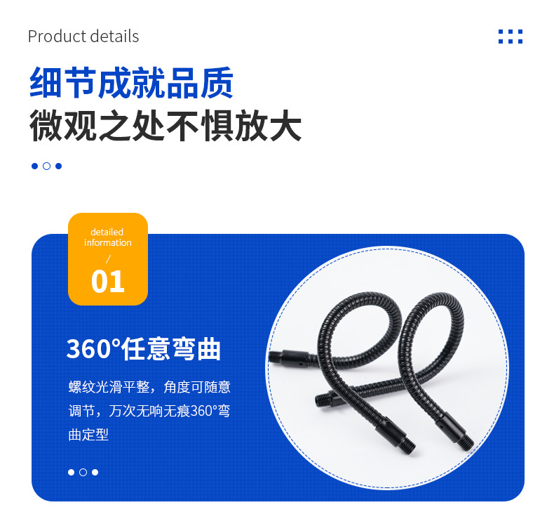 黑色金属软管鹅颈万向管定型台灯支架可随意弯曲蛇形杆工作灯配件