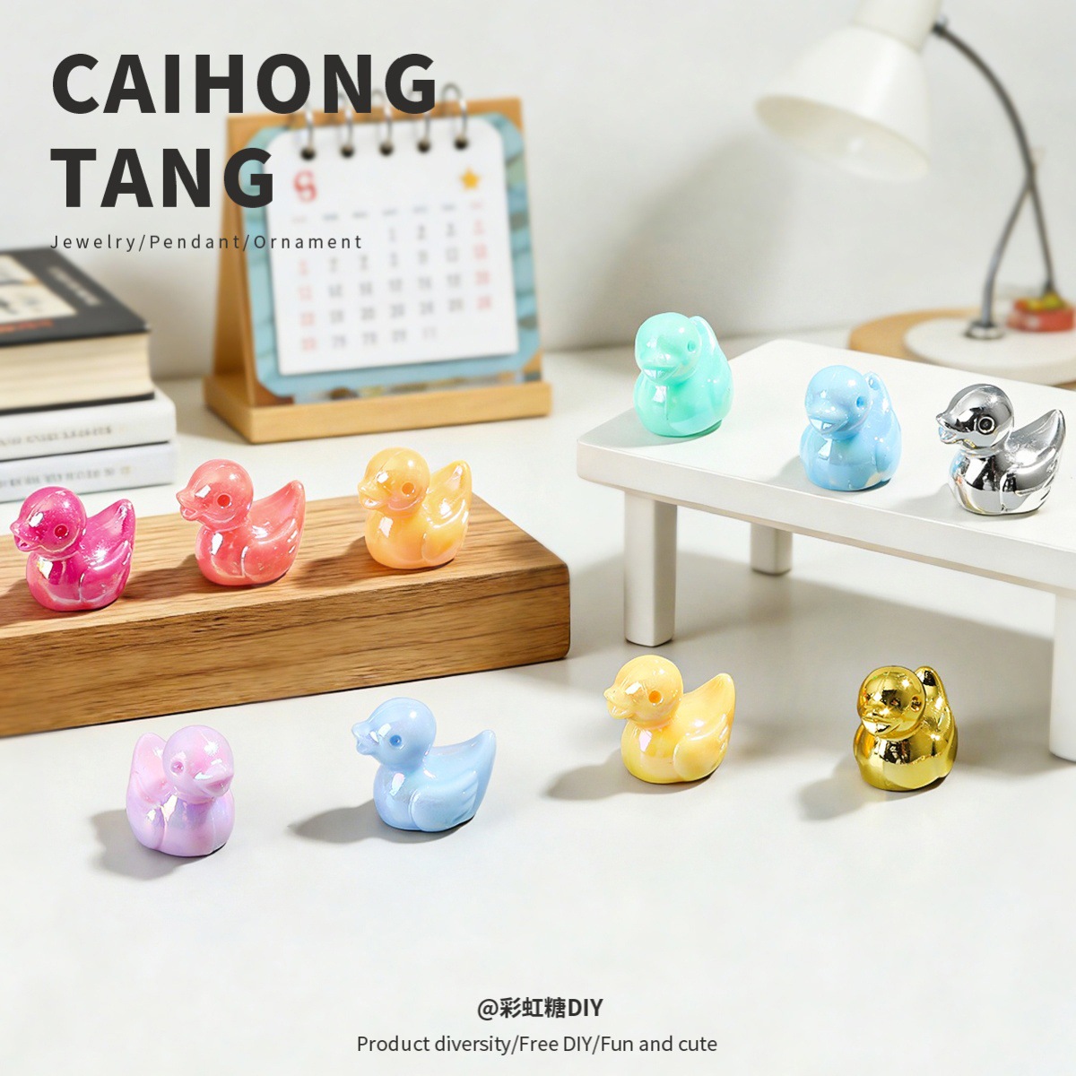 跨境新品电镀彩色小动物小黄鸭实色 diy树脂工艺饰品配件桌面摆件