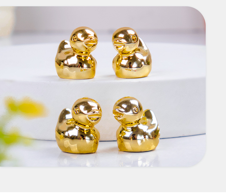 跨境热销电镀高透金色招财小鸭子 diy树脂工艺品装饰萌粒桌面摆件