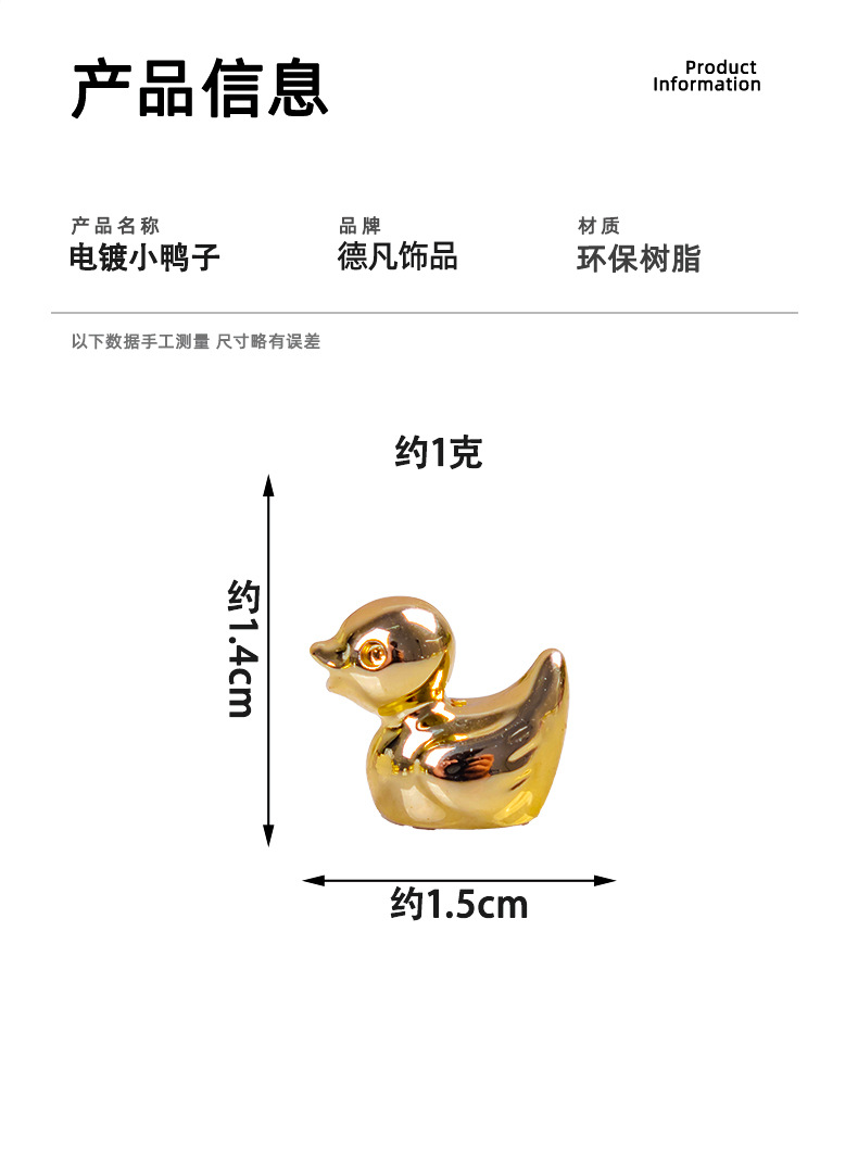 跨境新品电镀鸭子diy饰品配件树脂工艺品 动物桌面车载装饰品配件