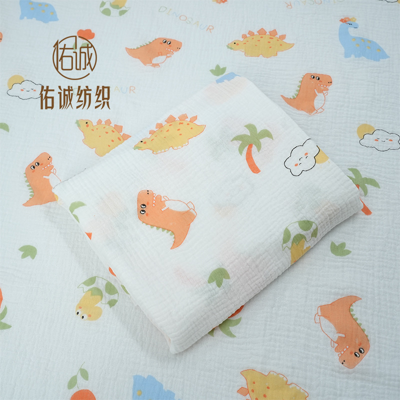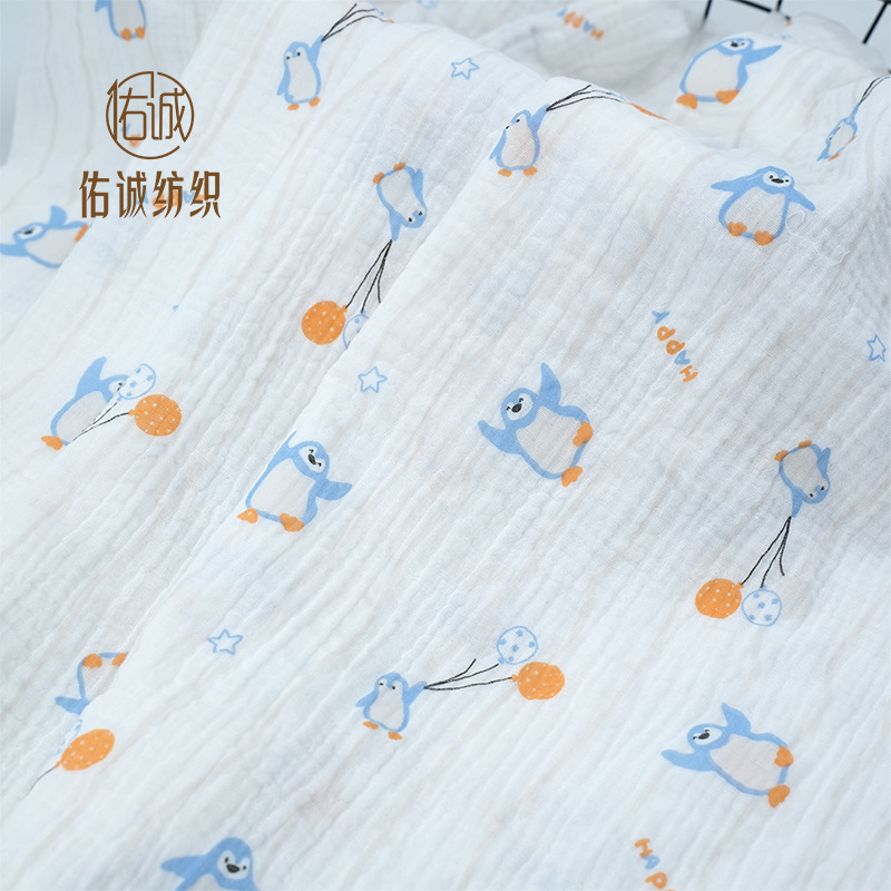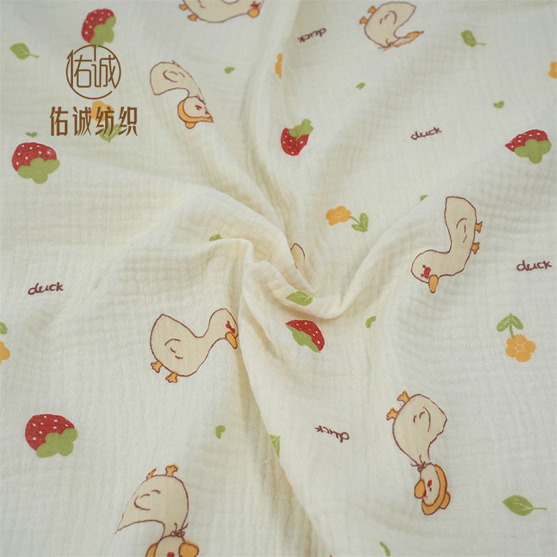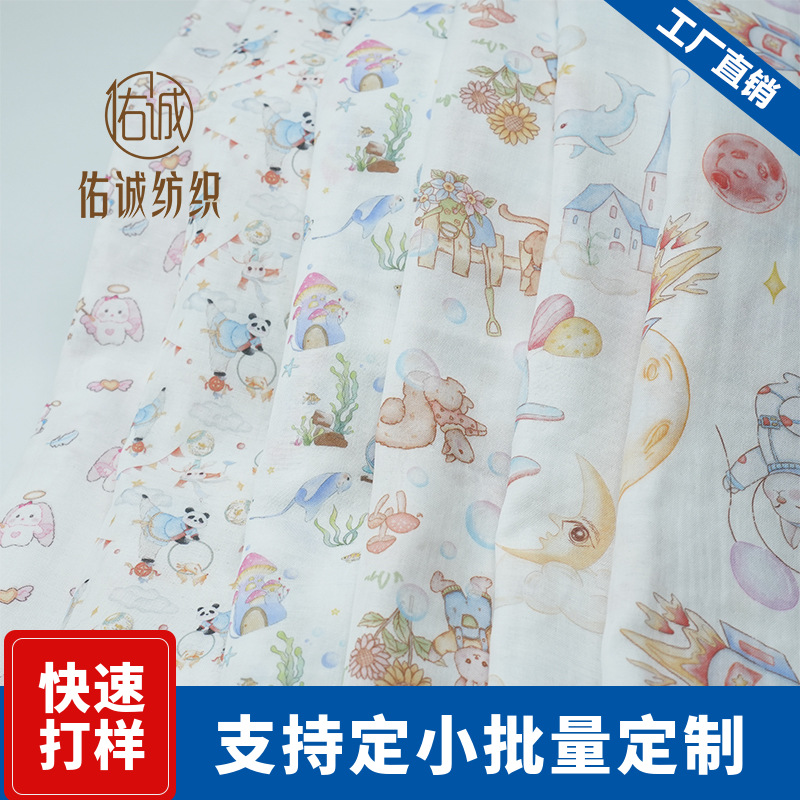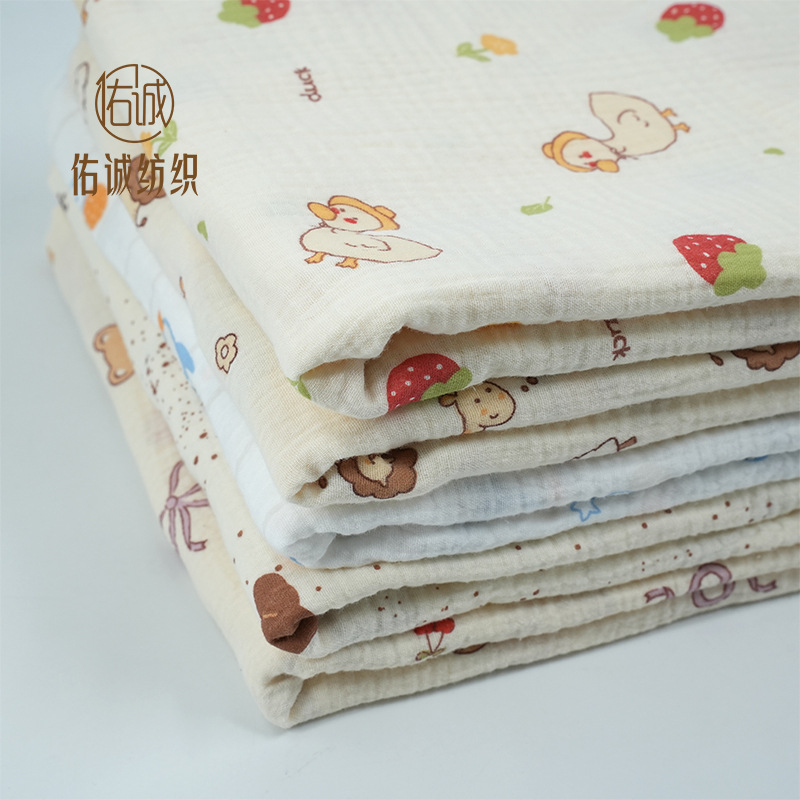 全棉卡通印花双层皱布纱布家居服婴幼儿用品绉绉面料透气纯棉