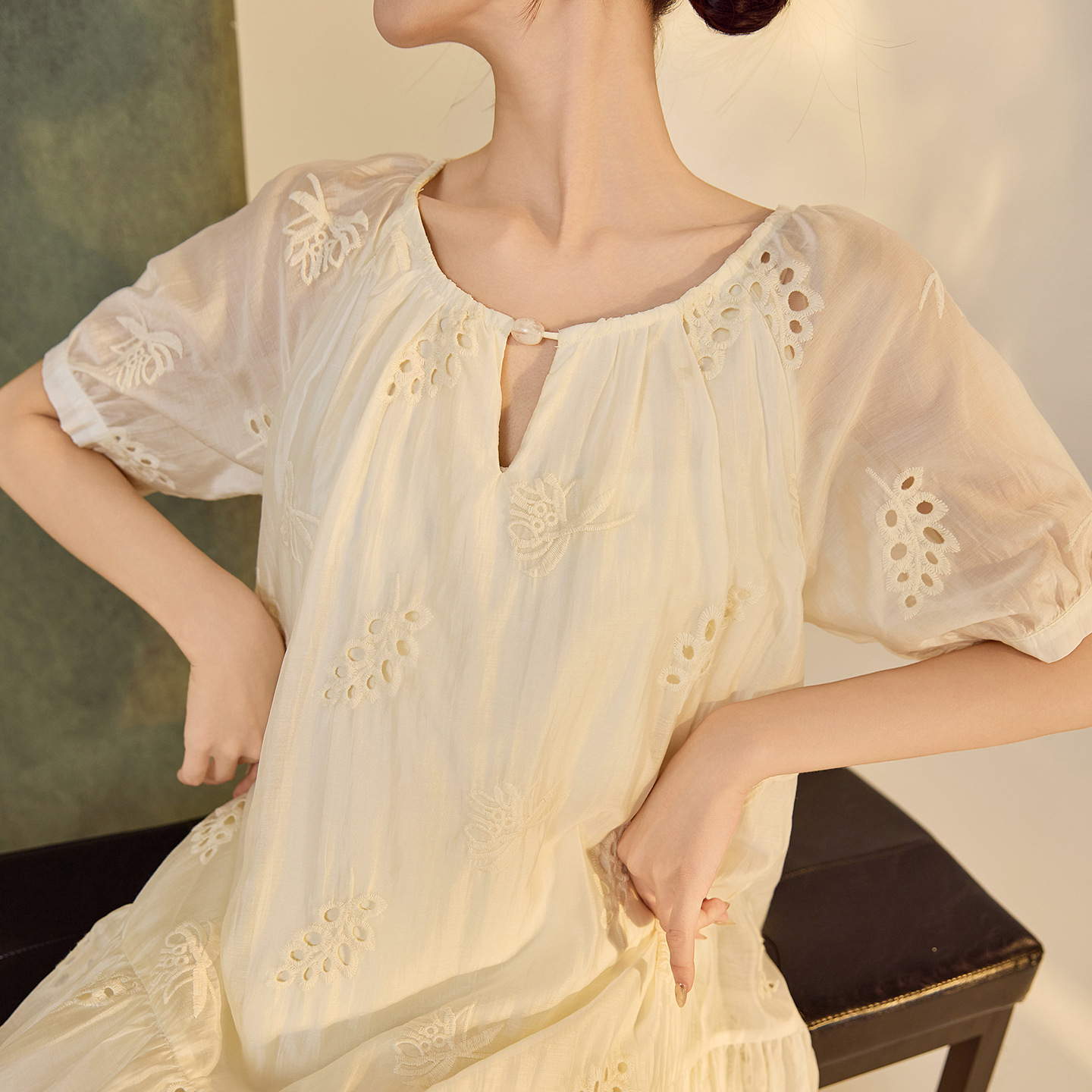 中国風 2025 夏テンセルハイエンドデザインドレス女性の新しい中国風ルーズドレス N6004
